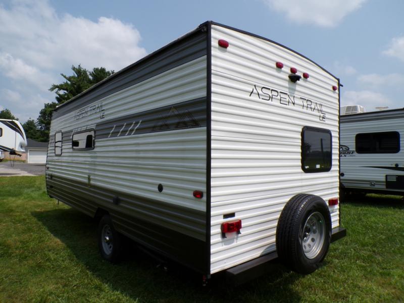 With any Aspen Trail LE travel trailer by Dutchmen, you will have a durable roof structure with a TPO roof, 3/8" decking, fiberglass insulation, and an insulated structure with a metal exterior panel, a wood frame with R7 thermal insulation and a lauan interior panel, plus superior A/C cooling. The interior offers upgraded residential flooring, full extension drawer guides throughout, mini blinds throughout for privacy, and LED interior lighting. Make your selection today and enjoy a smaller, lighter-weight RV!