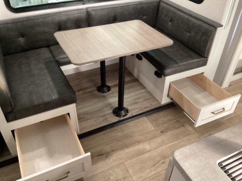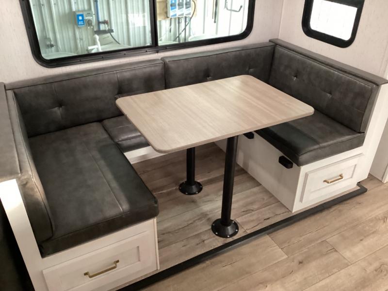 The living room and dinette area are sized and shaped to make mealtime, relaxing, and game nights feel like part of the adventure. You get good circulation, natural light, and a layout that feels open without sacrificing privacy.