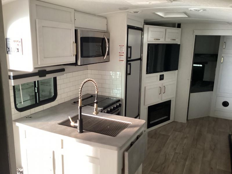 The family will love camping in this travel trailer! The kids can sleep in the rear private bunkhouse with the double-size bunk beds