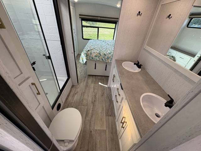 With any Astoria travel trailer, you'll get the Dutchmen construction advantage with features such as HyperDeck floor construction which includes linoleum flooring, vacuum bonded lamination, and a fully enclosed underbelly, plus a fiberglass cap with windshield. Some standard features that will impress you include an exterior spray port to keep the sand outside, arched interior ceiling for more standing space, dual 20 lb. propane tanks, dark-tinted safety glass windows, and stainless steel appliances so you can keep your bellies full with home cooked meals. Plus, an Astoria Premium package for even more convenience and comforts. Choose your favorite today!
