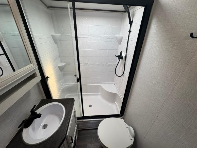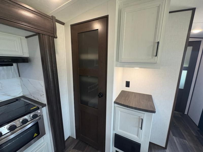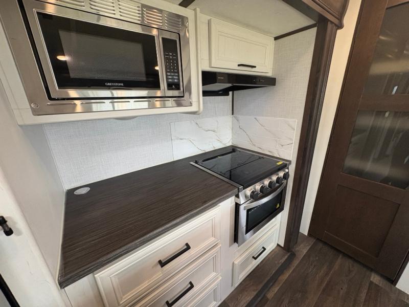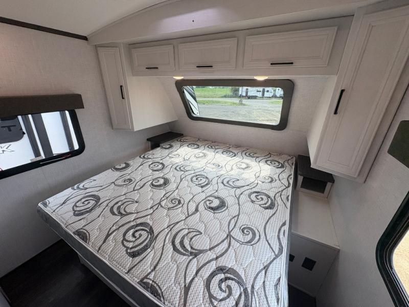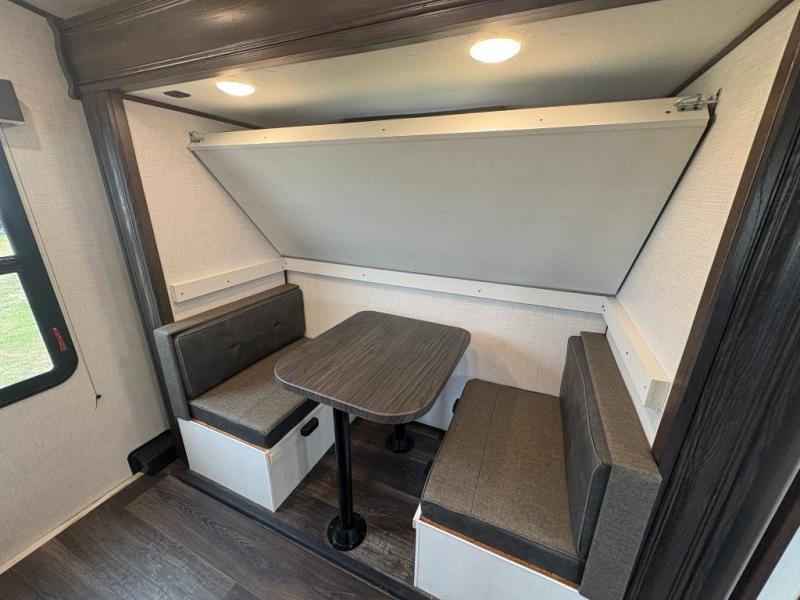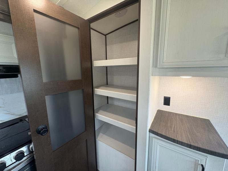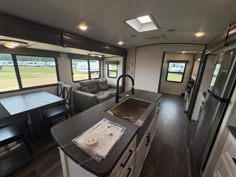 You can journey near or far with this Atlas travel trailer! Whether it's a local campground or a far-away state park, you will enjoy all that this trailer has to offer. There is much to love with the king-size bed in the front private bedroom, the kitchen island in between two opposing slides, the private bunkhouse with a slide out for more space, and the outdoor kitchen for cooking in the sunlight. When you find yourself indoors for the evening, you can switch on the LED HDTV for some entertainment, and the fireplace will add some ambiance to this space. Any time you are hungry, you can whip up something delicious on the recessed cooktop with large oven, and the pop-up power station will charge your electronics while you cook.