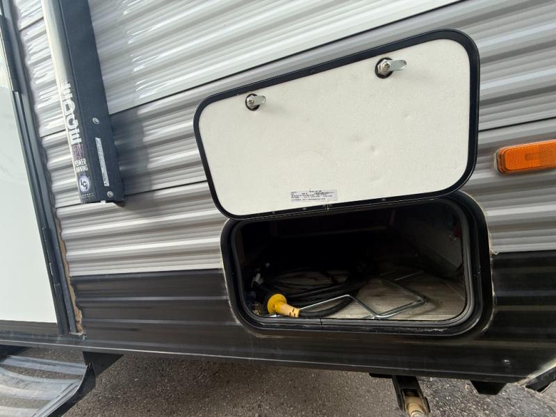 With this Coleman trailer, you will experience Dutchmen quality throughout, plus enjoy a lightweight travel trailer while towing to the campground or RV park. Some of the inside features include glass cabinet doors, a high rise faucet, and trash can storage. The 28" entrance door offers an entry handle to easily make your way up the solid entry step, and other exterior features include radial tires, silver spoke rims, Easy Lube axles and storage. Take this Coleman home today!