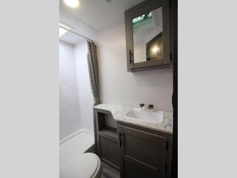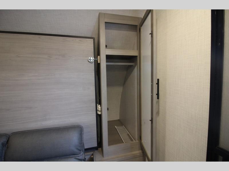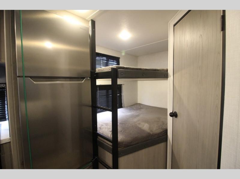 You can use this Coleman Light travel trailer for the many trips you have planned this summer! With a set of bunk beds, you'll have compact sleeping for those traveling with you, and you can use the Murphy bed after you reposition the sofa and pull it down. If cooking is one of your favorite things, you'll love using the three-burner range to prepare meals, and you can also use the microwave to prepare fast snacks or reheat leftovers. If you want to get cleaned up before you head out for another adventure, use the shower in the full bathroom to do so. There is a power bath fan to keep the steam from overwhelming you and a wooden medicine cabinet with mirror to help you get ready.