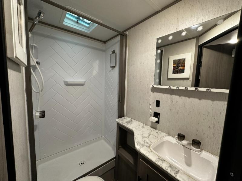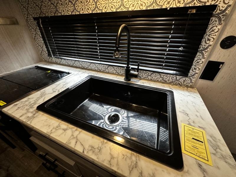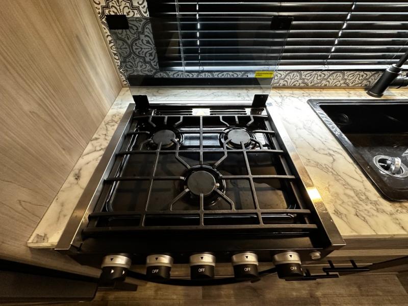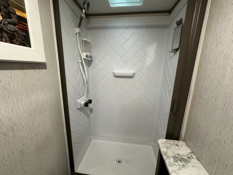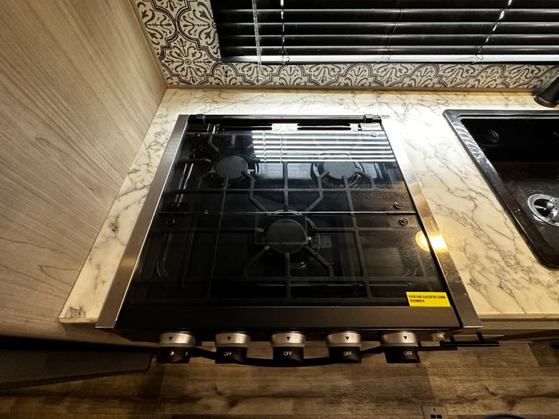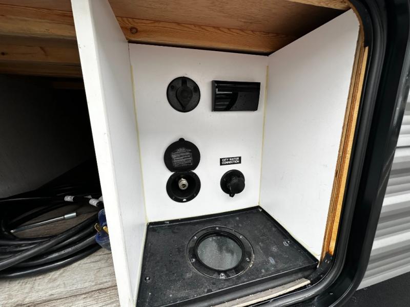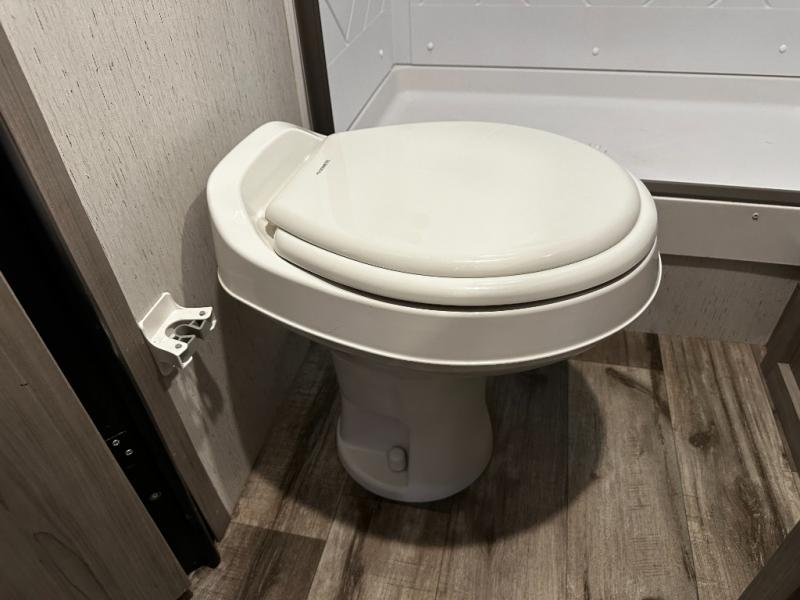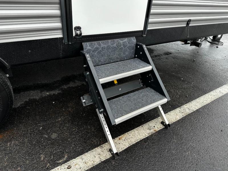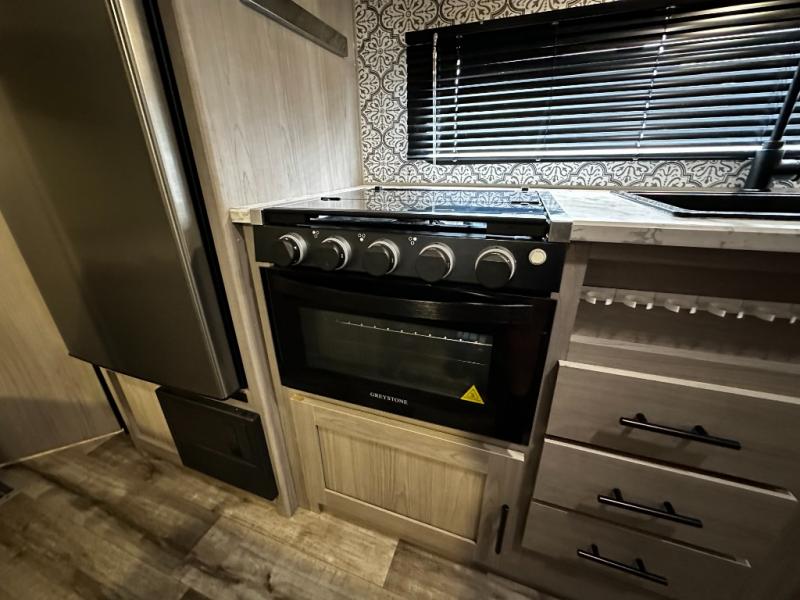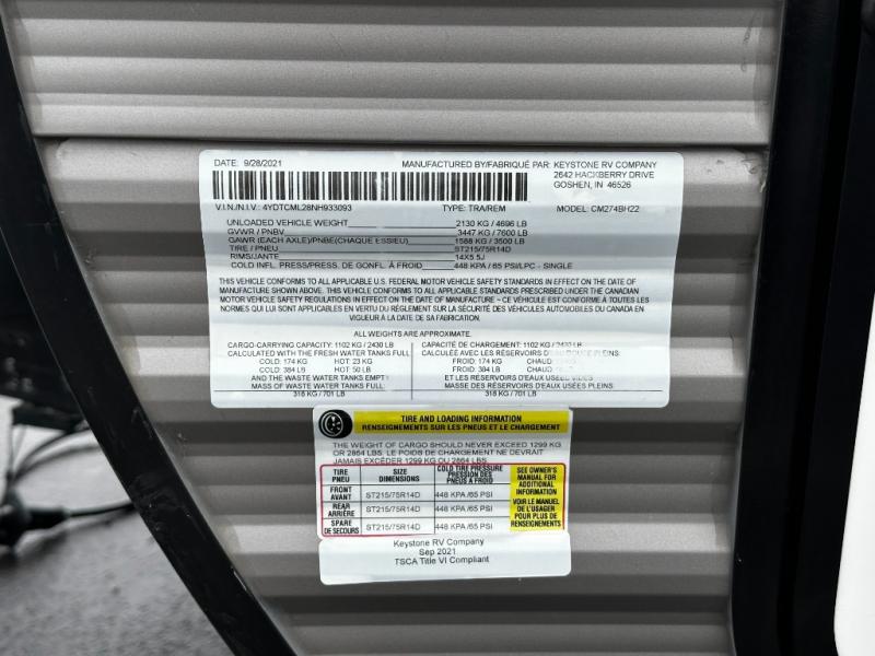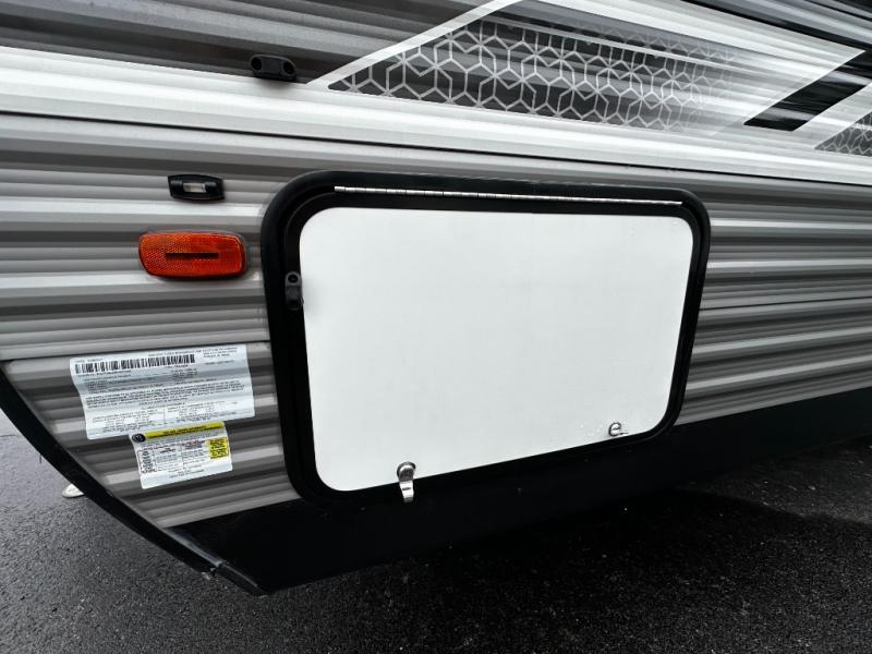 You can't go wrong with this travel trailer in tow! Whether you're relaxing under the 14' power awning, cooking in the full kitchen, or playing a game at the booth dinette, memories will be made. The double-size bunks provide more sleeping space, and the front bedroom will give you your own space to enjoy. This model also includes a full bath so you don't have to use the camp's facilities, and the bath fan will keep everything fresh. This model also incudes a 10 cu. ft. refrigerator, overhead compartments, and a pass-through storage for your larger camp gear!