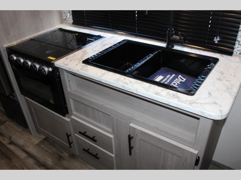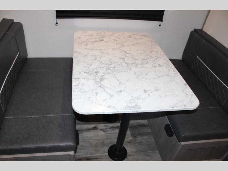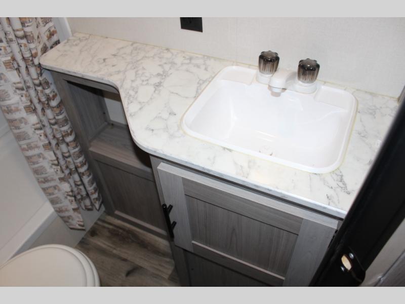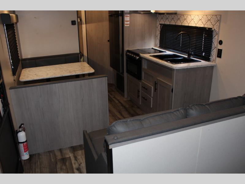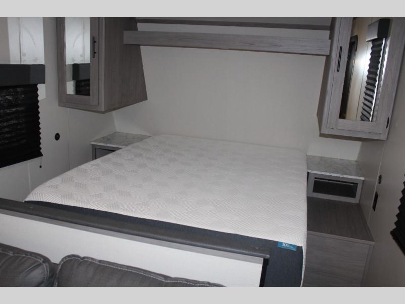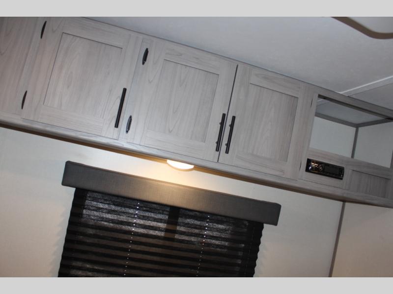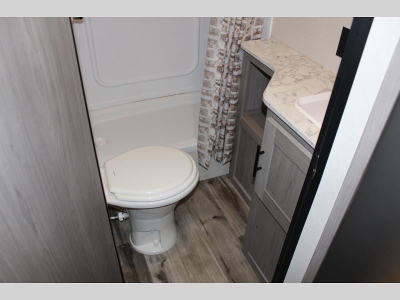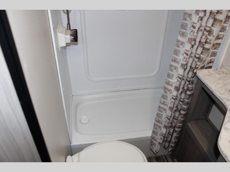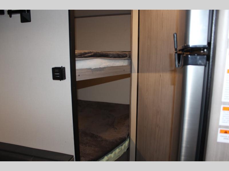 You can't go wrong with this travel trailer in tow! Whether you're relaxing under the 14' power awning, cooking in the full kitchen, or playing a game at the booth dinette, memories will be made. The double-size bunks provide more sleeping space, and the front bedroom will give you your own space to enjoy. This model also includes a full bath so you don't have to use the camp's facilities, and the bath fan will keep everything fresh. This model also incudes a 10 cu. ft. refrigerator, overhead compartments, and a pass-through storage for your larger camp gear!
