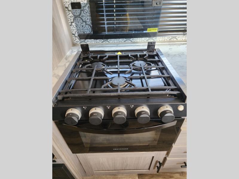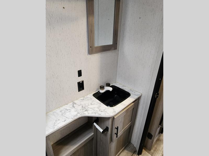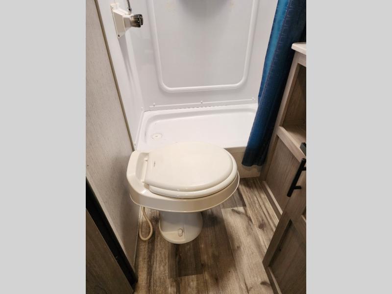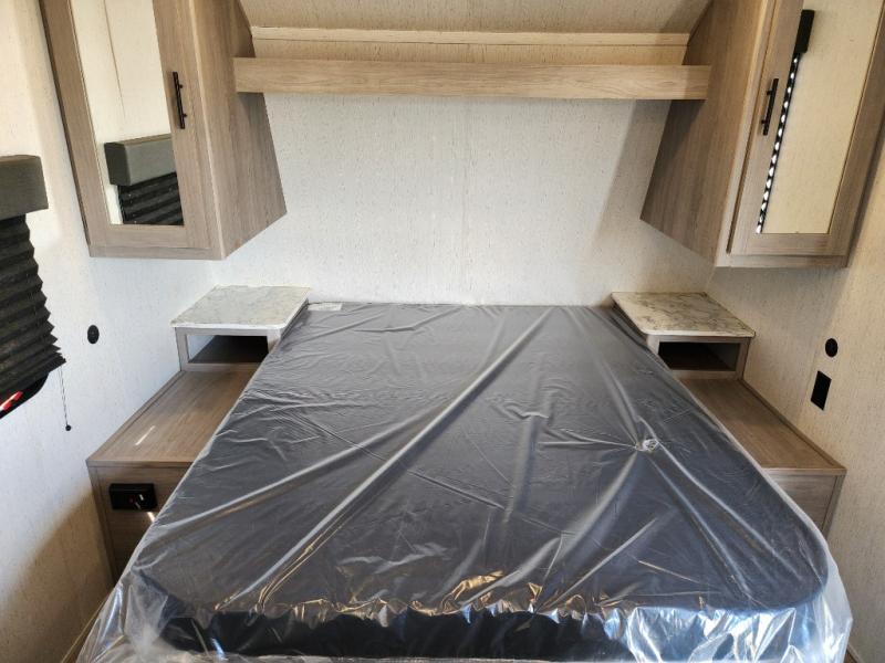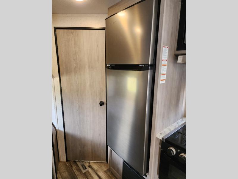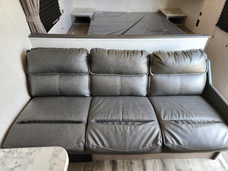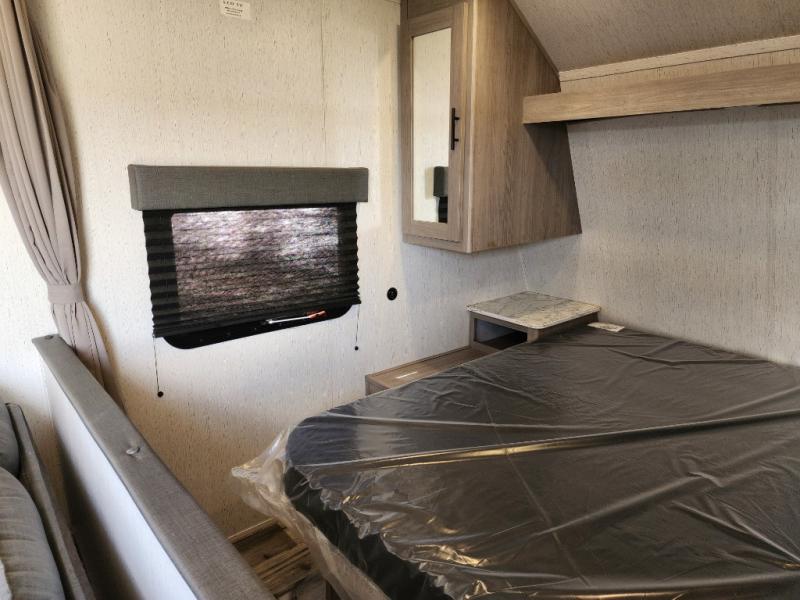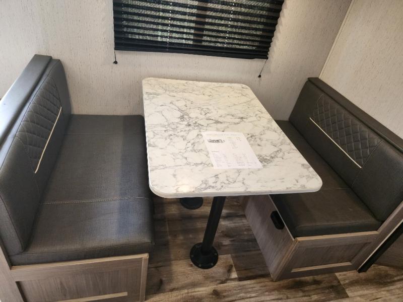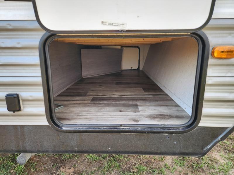 You can't go wrong with this travel trailer in tow! Whether you're relaxing under the 14' power awning, cooking in the full kitchen, or playing a game at the booth dinette, memories will be made. The double-size bunks provide more sleeping space, and the front bedroom will give you your own space to enjoy. This model also includes a full bath so you don't have to use the camp's facilities, and the bath fan will keep everything fresh. This model also incudes a 10 cu. ft. refrigerator, overhead compartments, and a pass-through storage for your larger camp gear!