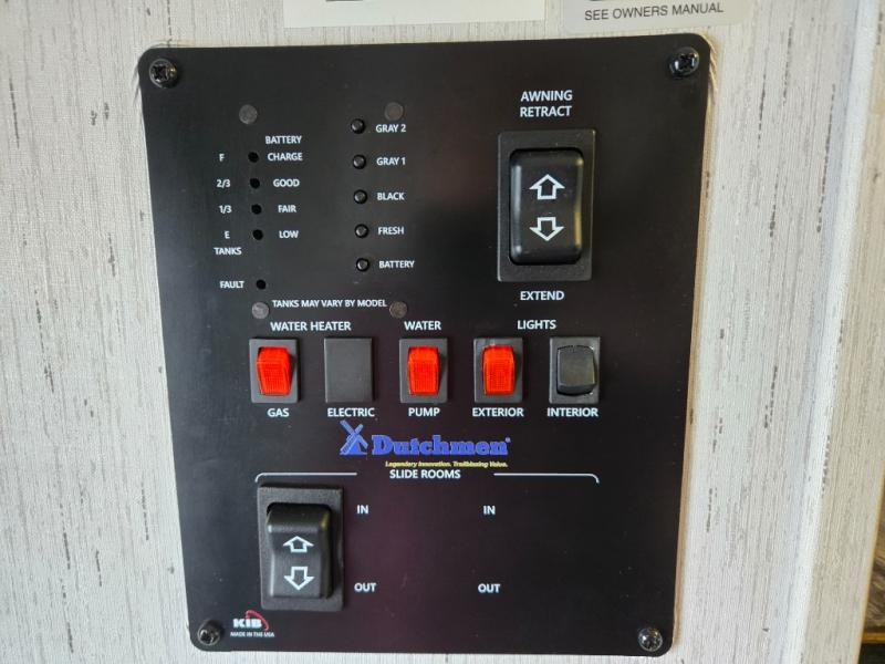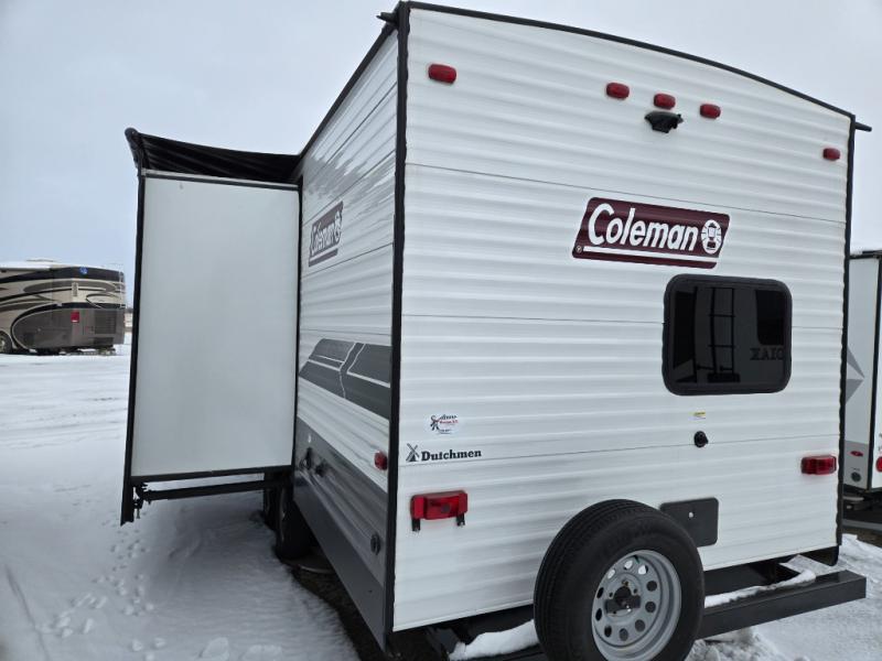 With any Coleman Lantern Series travel trailer and toy hauler travel trailer, the interior will impress with upgraded residential grade linoleum and Eyewear luxury furniture for style and durability, the undermounted large kitchen sink with stainless steel high-rise kitchen faucet, and seamless countertops, plus the hard valances in the living room and master bedroom and the AM/FM/CD/AUX/Bluetooth stereo. The Dutchmen construction advantage is included and provides a durable roof structure with a TPO roof, 3/8" decking, fiberglass insulation, and a lauan interior panel, plus an insulated structure with a metal exterior panel, a wood frame with R7 thermal insulation and an lauan interior panel. Also included is the Blade air flow system which helps reduce air turbulence and noise with duct elbows and wyes that feature enlarged inlets. Choose a Coleman Lantern Series because you appreciate quality, value and design when you camp!