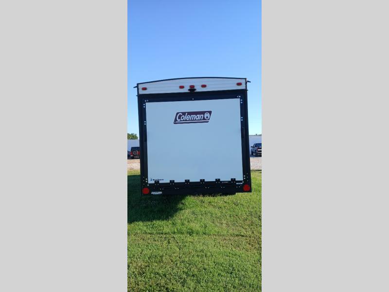 With any Coleman Lantern Series travel trailer and toy hauler travel trailer, the interior will impress with upgraded residential grade linoleum and Eyewear luxury furniture for style and durability, the undermounted large kitchen sink with stainless steel high-rise kitchen faucet, and seamless countertops, plus the hard valances in the living room and master bedroom and the AM/FM/CD/AUX/Bluetooth stereo. The Dutchmen construction advantage is included and provides a durable roof structure with a TPO roof, 3/8" decking, fiberglass insulation, and a lauan interior panel, plus an insulated structure with a metal exterior panel, a wood frame with R7 thermal insulation and an lauan interior panel. Also included is the Blade air flow system which helps reduce air turbulence and noise with duct elbows and wyes that feature enlarged inlets. Choose a Coleman Lantern Series because you appreciate quality, value and design when you camp!
