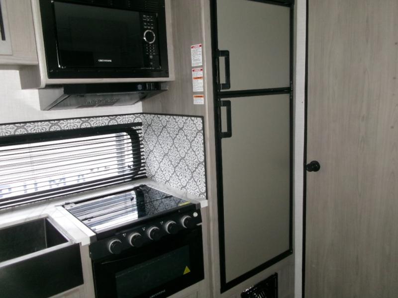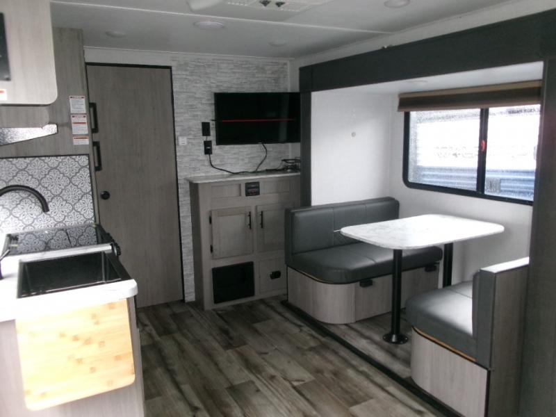 You'll definitely want to add this Coleman Light travel trailer to your camping line-up! It won't be hard to tow since this trailer is under 4,500 pounds, and it won't be hard to love since this trailer has all of the essentials. You'll have a booth dinette for eating breakfast together before you start the excursions, and the Murphy bed can conveniently fold away in the morning to reveal a sofa for afternoon lounging. A single slide adds more living space, and the rear bathroom adds privacy. The kitchen has a 7-cubic foot refrigerator for storing vegetables, and for more storage space for your belongings, head to the exterior pass-through storage.