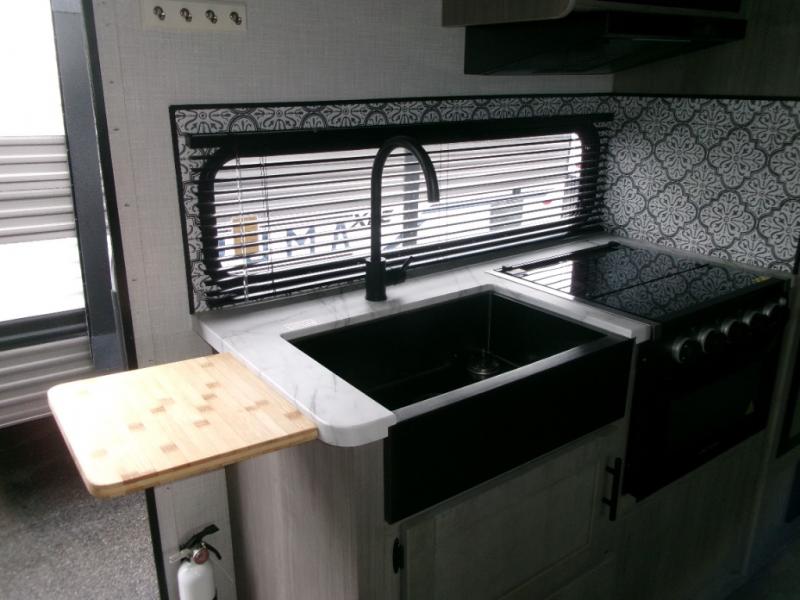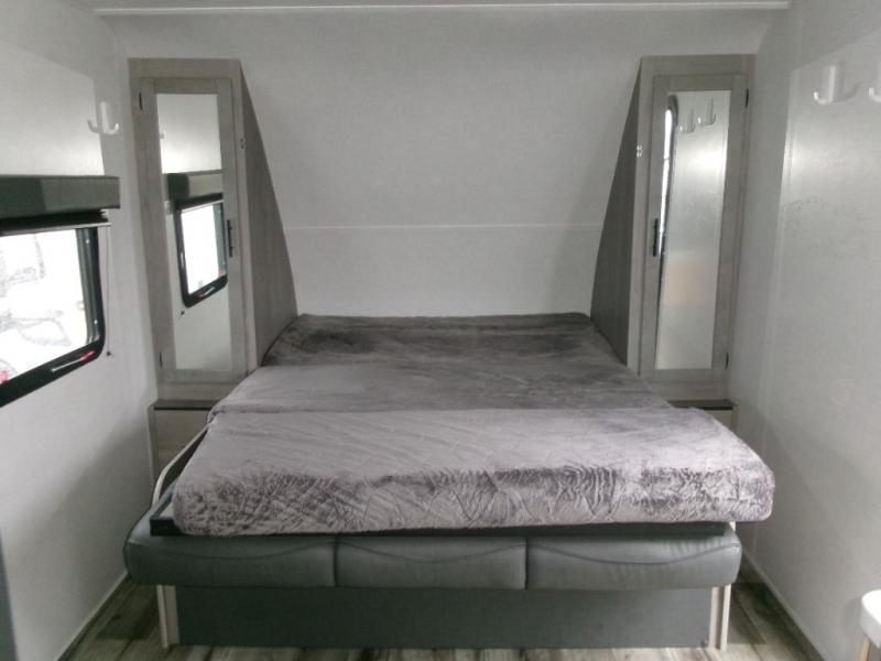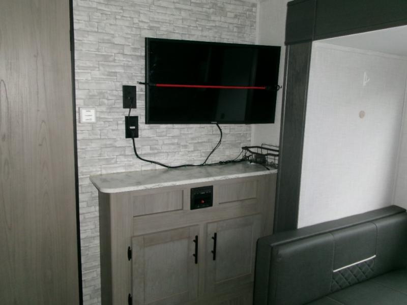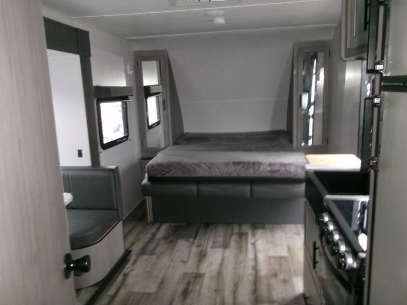 The Dutchmen Coleman Light travel trailer features an upgraded kitchen package with residential appliances, high-rise faucets, and a stainless steel farm-style sink. The fully enclosed underbelly allows all of your trailer's vital functions to be kept out of the freezing cold, and you'll have great stability as you enter your trailer by using the solid entry steps. Each model includes power stabilizer jacks, a power tongue jack, dual 20-LB propane tanks, a residential queen bed, and preparations for Wi-Fi 4G LTE. There is an aerodynamic front fiberglass cap, exterior speakers, solar charging connection, and aluminum wheels.