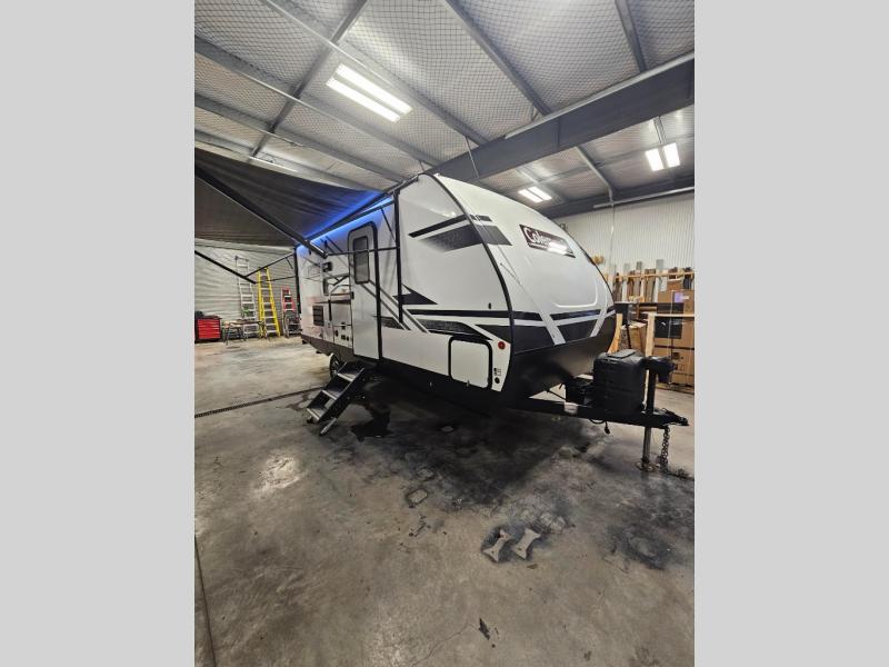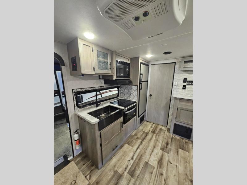 The Dutchmen Coleman Light travel trailer features an upgraded kitchen package with residential appliances, high-rise faucets, and a stainless steel farm-style sink. The fully enclosed underbelly allows all of your trailer's vital functions to be kept out of the freezing cold, and you'll have great stability as you enter your trailer by using the solid entry steps. Each model includes power stabilizer jacks, a power tongue jack, dual 20-LB propane tanks, a residential queen bed, and preparations for Wi-Fi 4G LTE. There is an aerodynamic front fiberglass cap, exterior speakers, solar charging connection, and aluminum wheels.