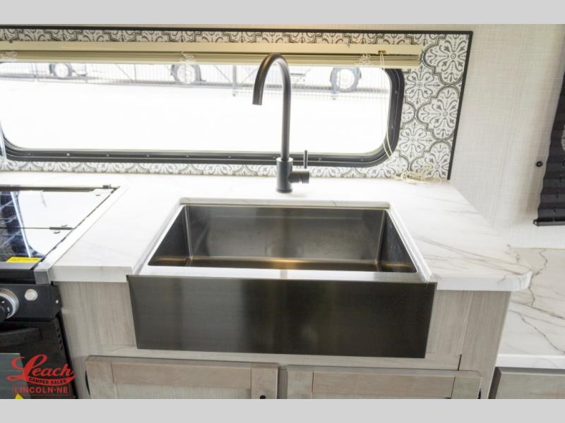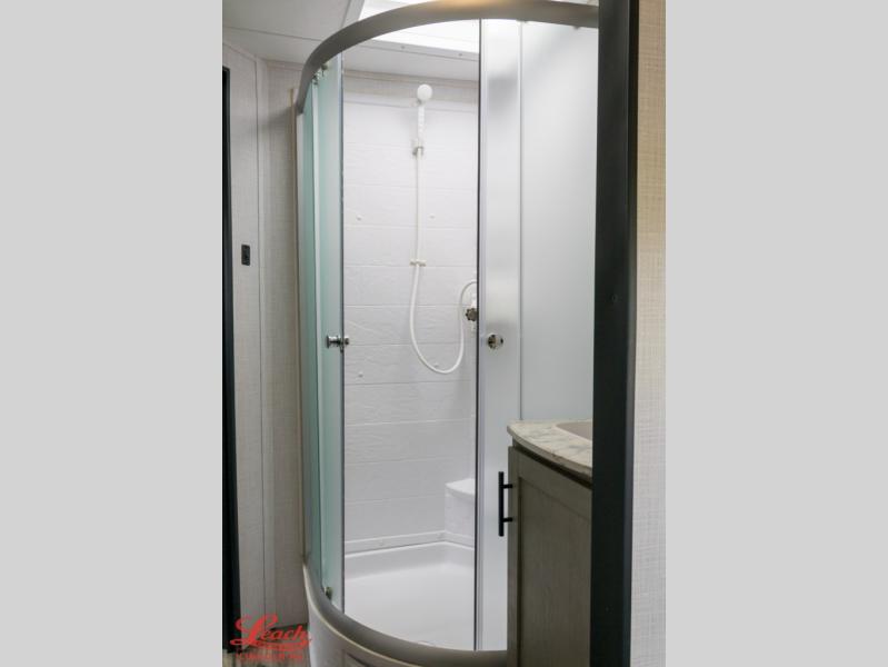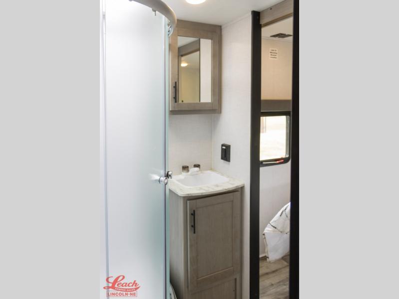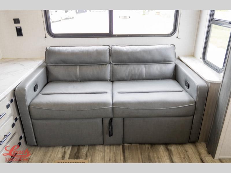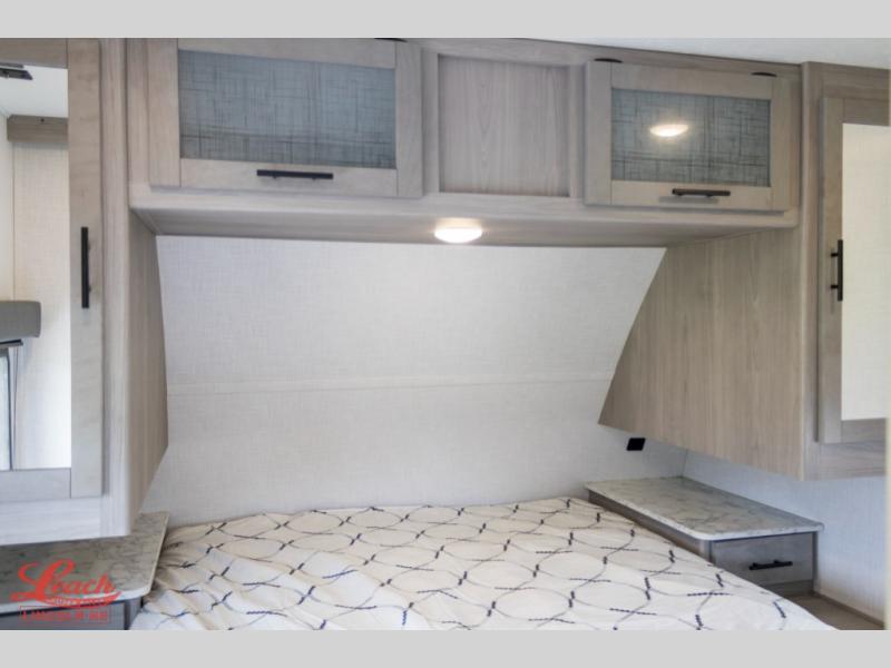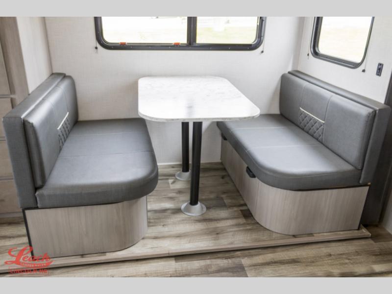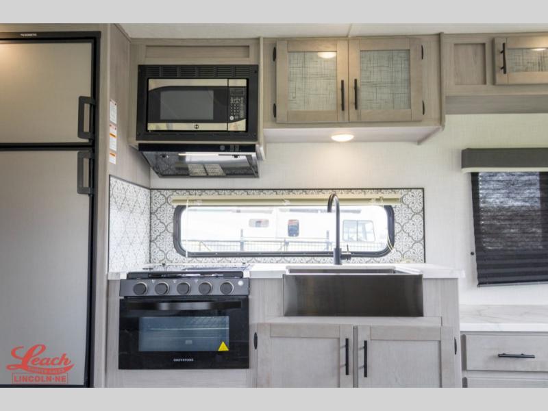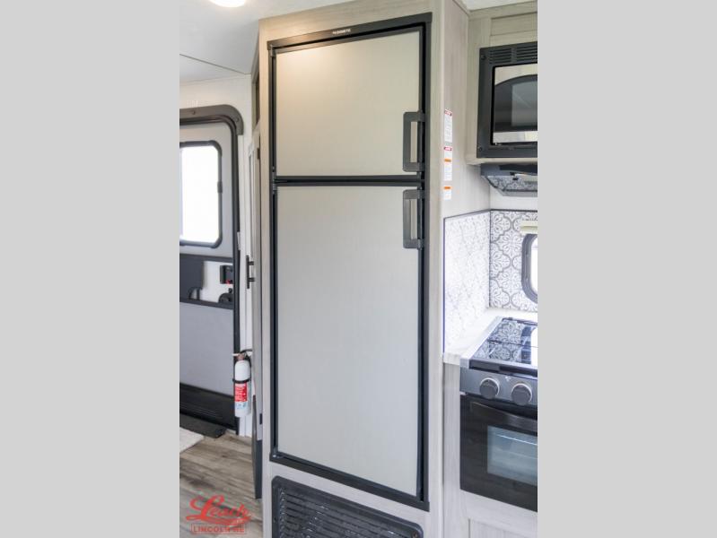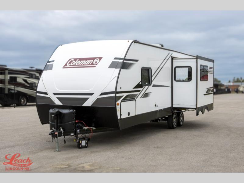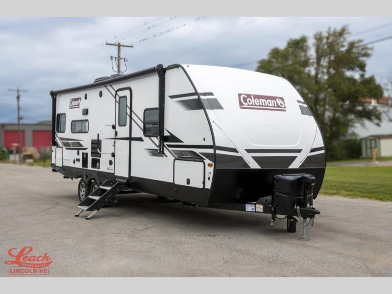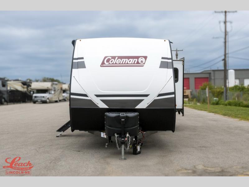 The Dutchmen Coleman Light travel trailer features an upgraded kitchen package with residential appliances, high-rise faucets, and a stainless steel farm-style sink. The fully enclosed underbelly allows all of your trailer's vital functions to be kept out of the freezing cold, and you'll have great stability as you enter your trailer by using the solid entry steps. Each model includes power stabilizer jacks, a power tongue jack, dual 20-LB propane tanks, a residential queen bed, and preparations for Wi-Fi 4G LTE. There is an aerodynamic front fiberglass cap, exterior speakers, solar charging connection, and aluminum wheels.