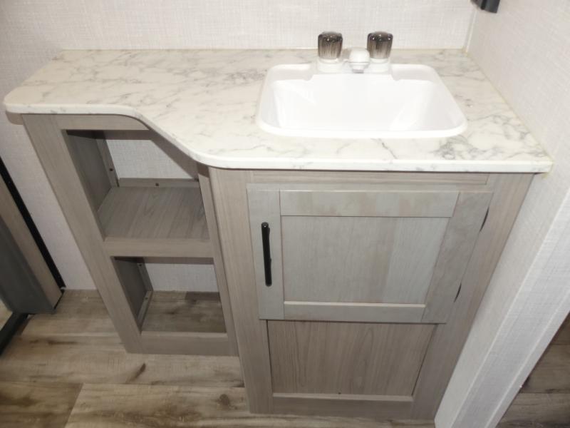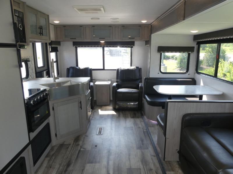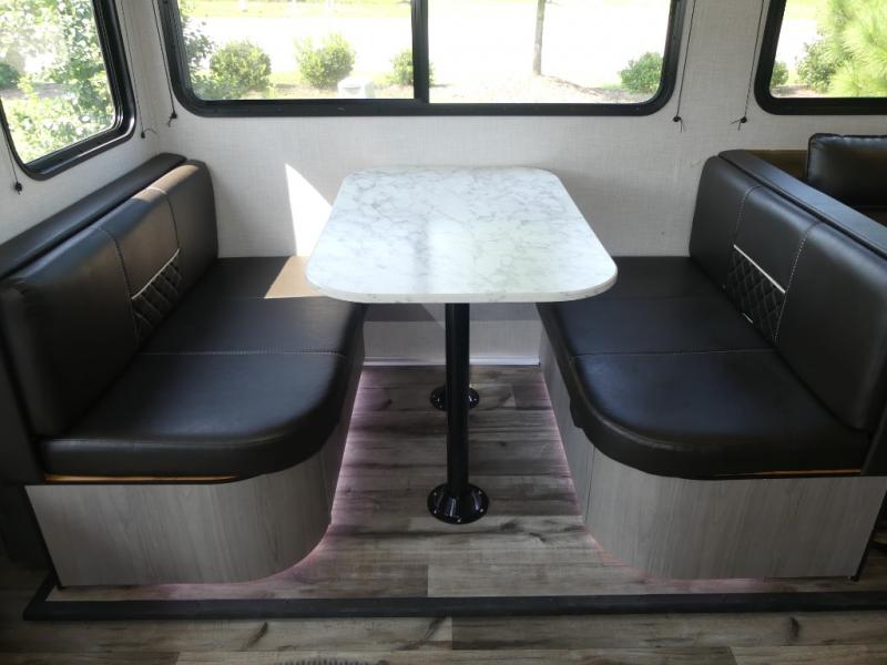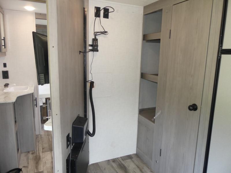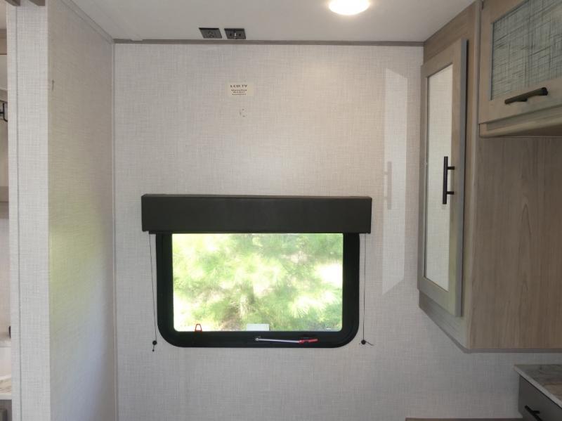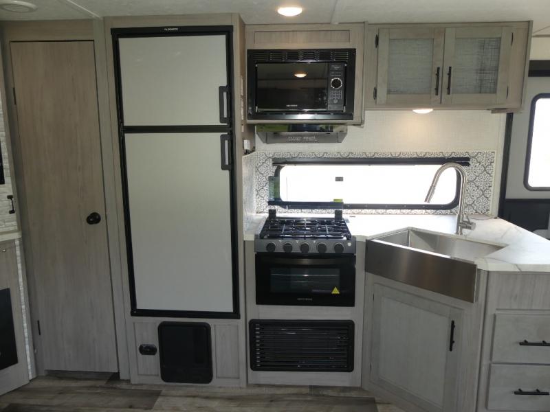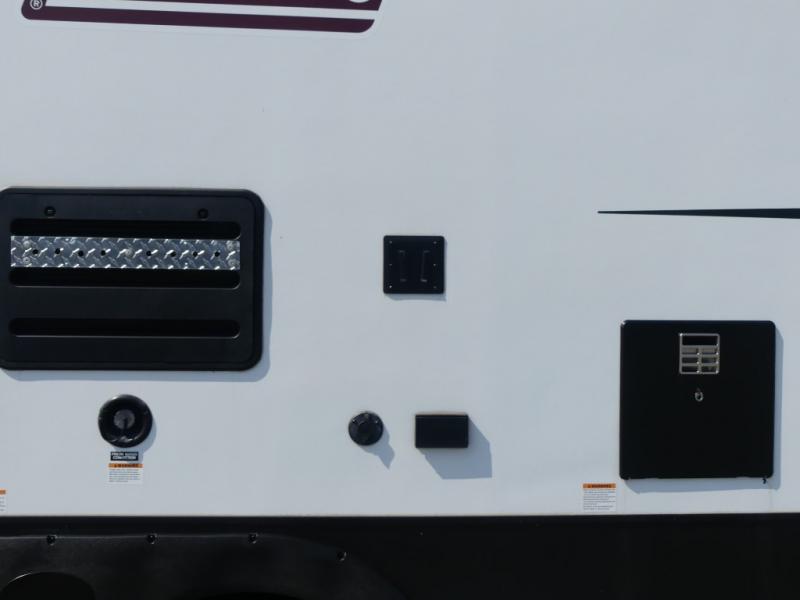 The Dutchmen Coleman Light travel trailer features an upgraded kitchen package with residential appliances, high-rise faucets, and a stainless steel farm-style sink. The fully enclosed underbelly allows all of your trailer's vital functions to be kept out of the freezing cold, and you'll have great stability as you enter your trailer by using the solid entry steps. Each model includes power stabilizer jacks, a power tongue jack, dual 20-LB propane tanks, a residential queen bed, and preparations for Wi-Fi 4G LTE. There is an aerodynamic front fiberglass cap, exterior speakers, solar charging connection, and aluminum wheels.