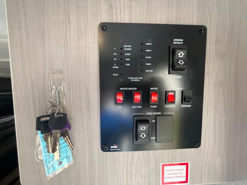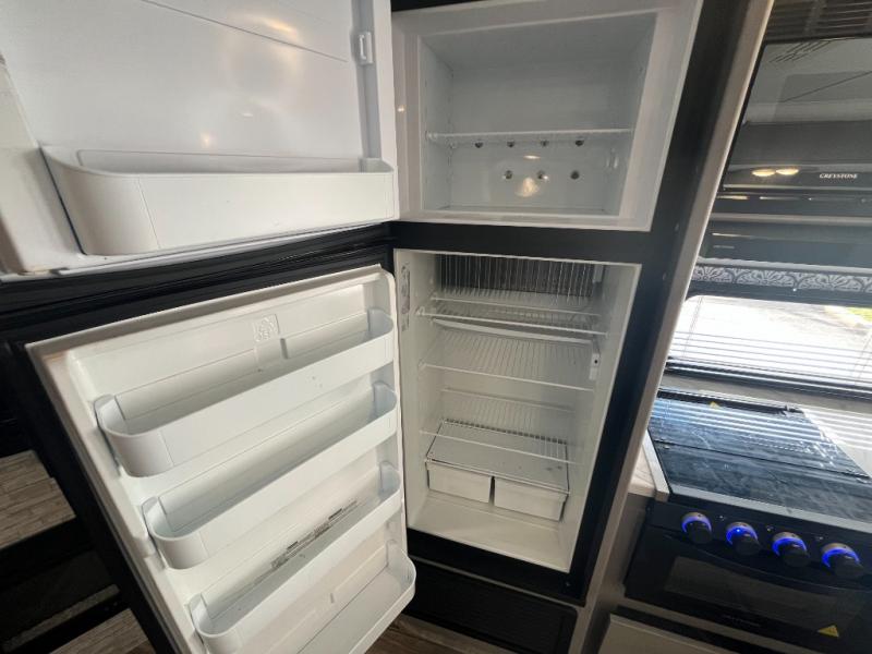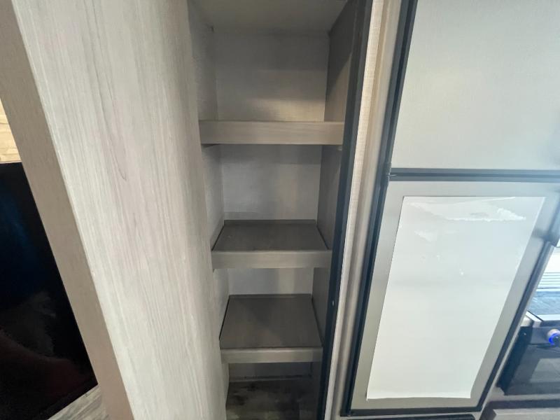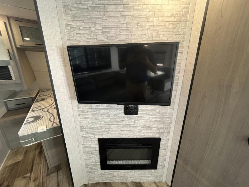 This Coleman Light travel trailer is quite accommodating with its bunk beds, U-shaped dinette, reclining sofa, and residential queen bed! There is a large slide that will create an open living area, and you can relax in front of the fireplace when you need a little extra heat on a chilly day. The hinged entertainment center hides a pantry in the kitchen, and there is also a 7-cubic foot refrigerator that you can use for cold food storage. Come and go as you please with the two entry doors, and spend some time outside cooking meals at the outdoor kitchen while the 20' power awning protects you from stray rain drops.