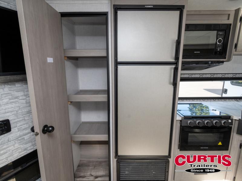 This Coleman Light travel trailer is quite accommodating with its bunk beds, U-shaped dinette, reclining sofa, and residential queen bed! There is a large slide that will create an open living area, and you can relax in front of the fireplace when you need a little extra heat on a chilly day. The hinged entertainment center hides a pantry in the kitchen, and there is also a 7-cubic foot refrigerator that you can use for cold food storage. Come and go as you please with the two entry doors, and spend some time outside cooking meals at the outdoor kitchen while the 20' power awning protects you from stray rain drops.