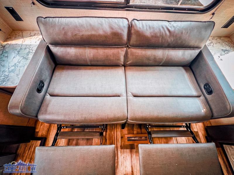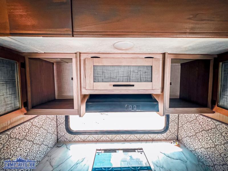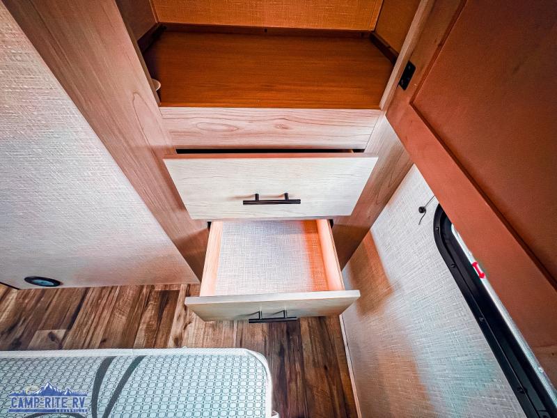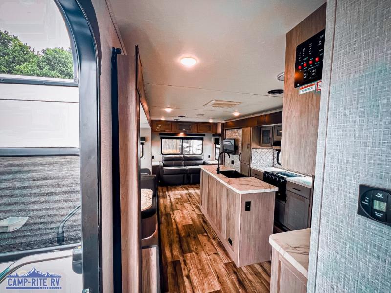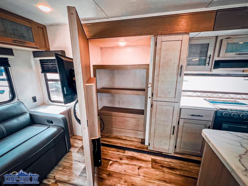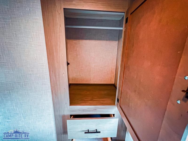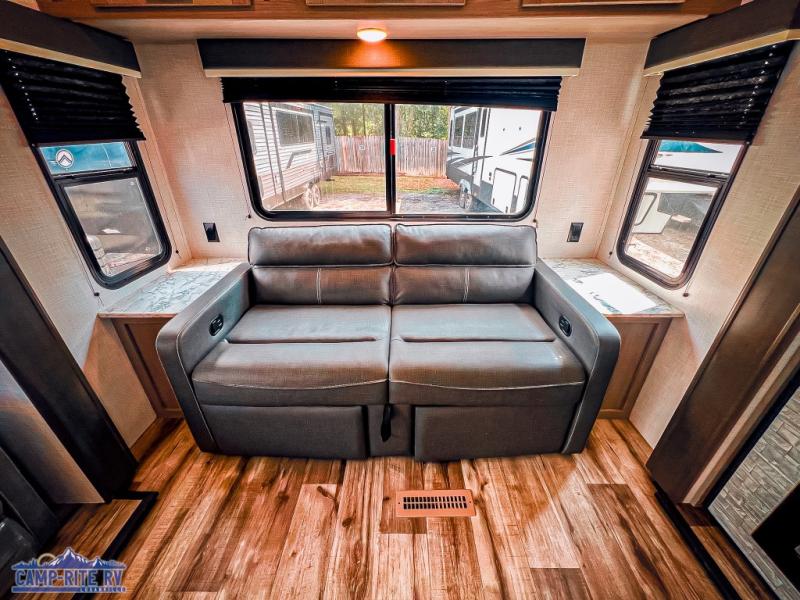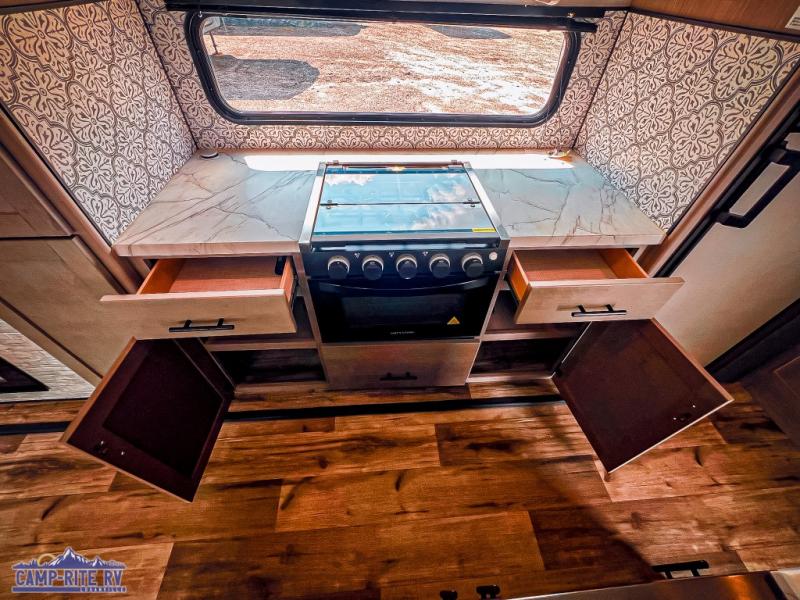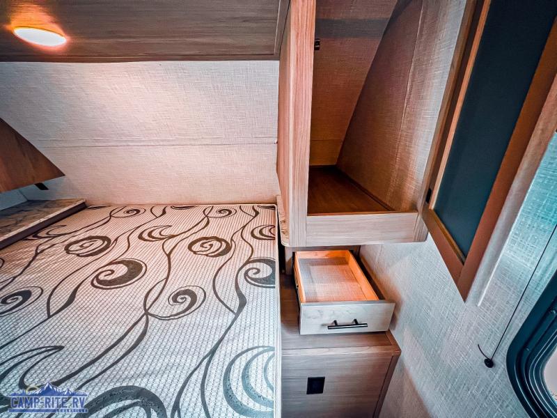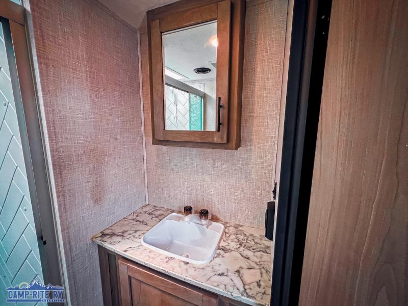 The Dutchmen Coleman Light travel trailer features an upgraded kitchen package with residential appliances, high-rise faucets, and a stainless steel farm-style sink. The fully enclosed underbelly allows all of your trailer's vital functions to be kept out of the freezing cold, and you'll have great stability as you enter your trailer by using the solid entry steps. Each model includes power stabilizer jacks, a power tongue jack, dual 20-LB propane tanks, a residential queen bed, and preparations for Wi-Fi 4G LTE. There is an aerodynamic front fiberglass cap, exterior speakers, solar charging connection, and aluminum wheels.
