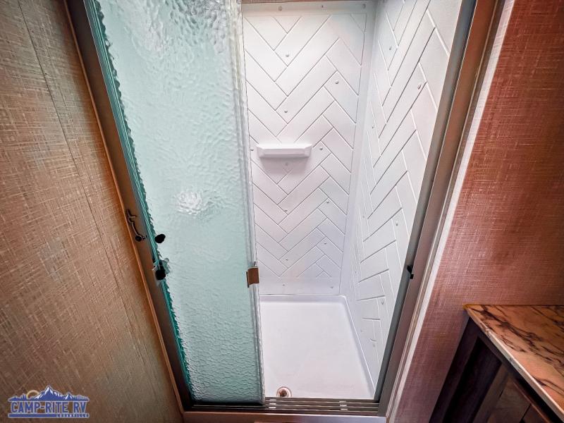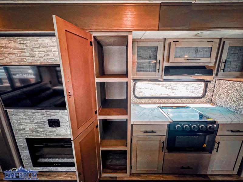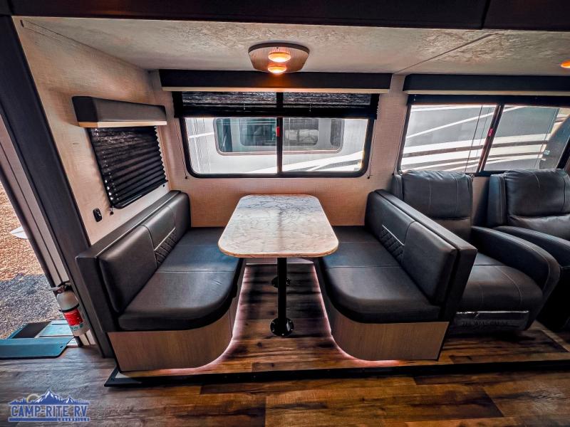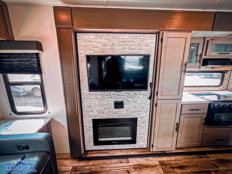 Don't let this Coleman Light travel trailer pass you by! It has a great living area with opposing slides for added space, a fireplace for cozy evenings, two swivel rockers for relaxing, and a reclining sofa with end tables for getting comfortable after a long day. There is more seating at the booth dinette, and this piece of furniture can even be transformed into a bed too. The kitchen island makes a great dishwashing station, and the pantry can hold onto your canned goods or snacks. You'll also enjoy having a full bathroom to use for cleaning up each morning.