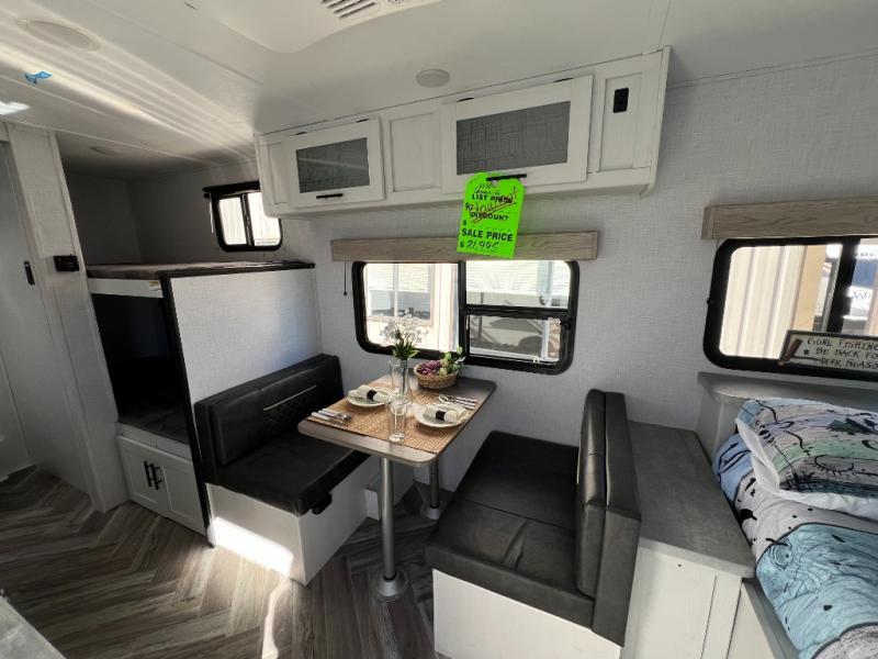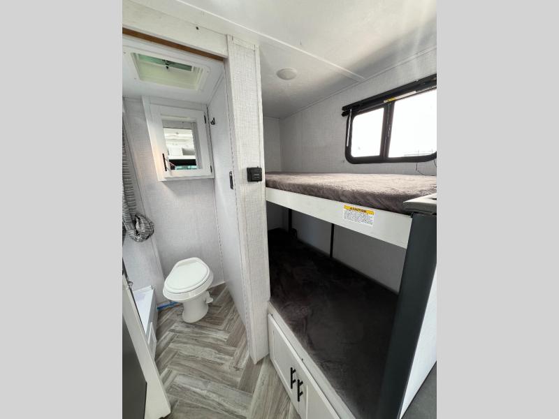 Toward the rear, the bunk beds add flexibility for family, guests, or extra gear, and the well-designed bathroom brings the convenience of home to every trip. With its lightweight build and practical floorplan, the Rubicon 1628BH strikes a balance between mobility and livability, making it an ideal choice for adventurers who want a trailer that’s easy to tow without giving up the essentials. It’s a clean, comfortable space ready to serve as your home base on the road.