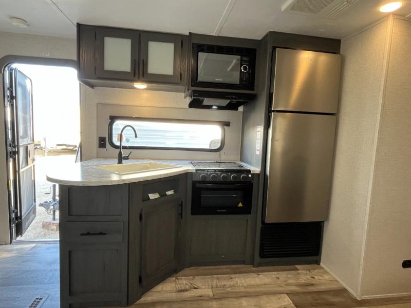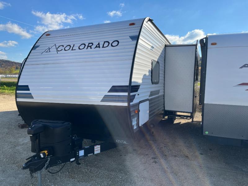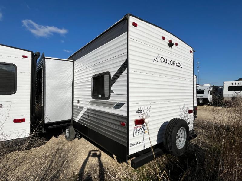 With any Colorado travel trailer by Dutchmen, you get more standard features giving you more value for your money! The interior offers upgraded residential flooring for durability, blackout night shades throughout for privacy, oversized windows for great views when inside, and full-extension drawer guides throughout. Each Colorado comes standard with the Dutchmen construction advantage including the Blade air flow system which is designed to reduce air turbulence and noise accelerating airflow. Other highlights include a power tongue jack, power stabilizer jacks, a high-output furnace, and solar prep. Make your selection today!