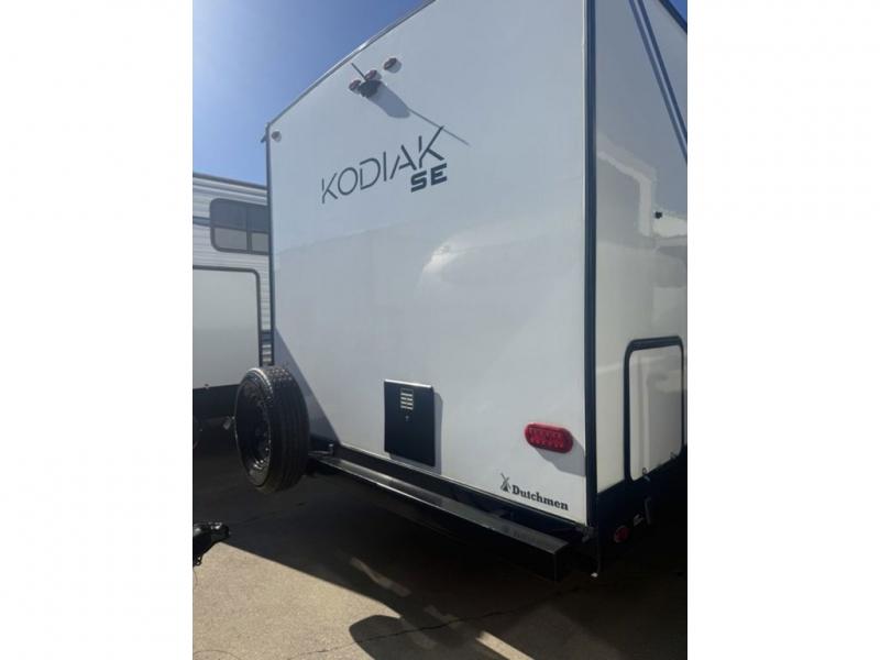With any Kodiak SE travel trailer by Dutchmen RV, you can experience comfort while camping at a moment's notice. Each trailer includes features such as power front and rear stabilizer jacks, a power tongue jack making set-up easy, and a power awning with LED light. Each model is pet-friendly with the carpet-free slide out floor, tile flooring, and the pet leash D-ring. You can enjoy the wireless Bluetooth speaker, the LED interior and exterior lighting, and the 80" interior height. From the floor structure which includes a fully enclosed underbelly to the laminated walls with aluminum frame and block foam insulation, any Kodiak SE is built lightweight and ready for adventure!