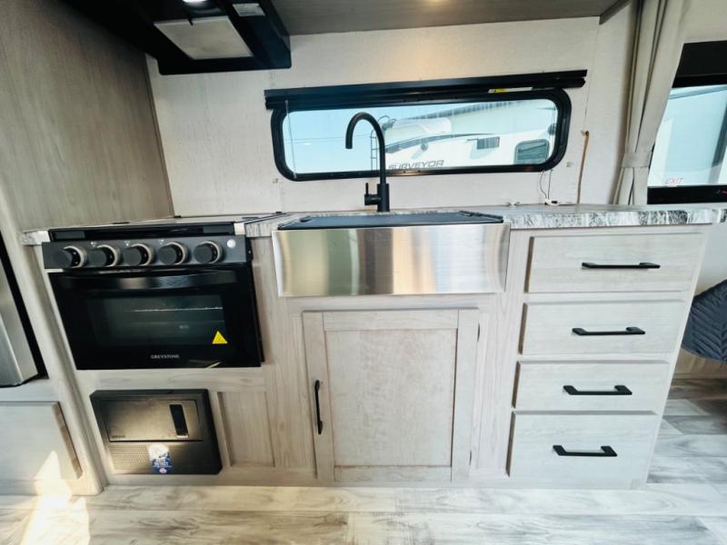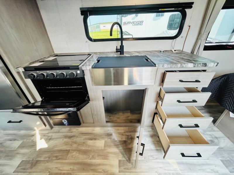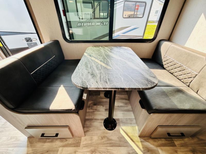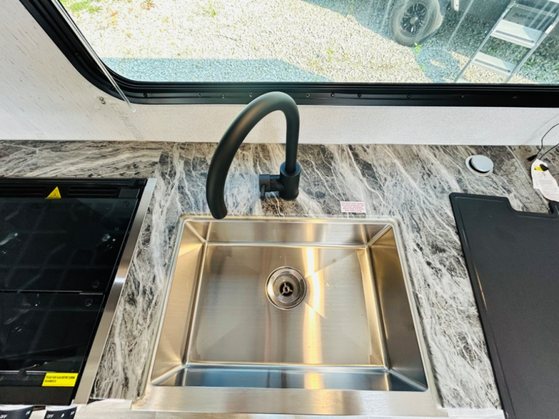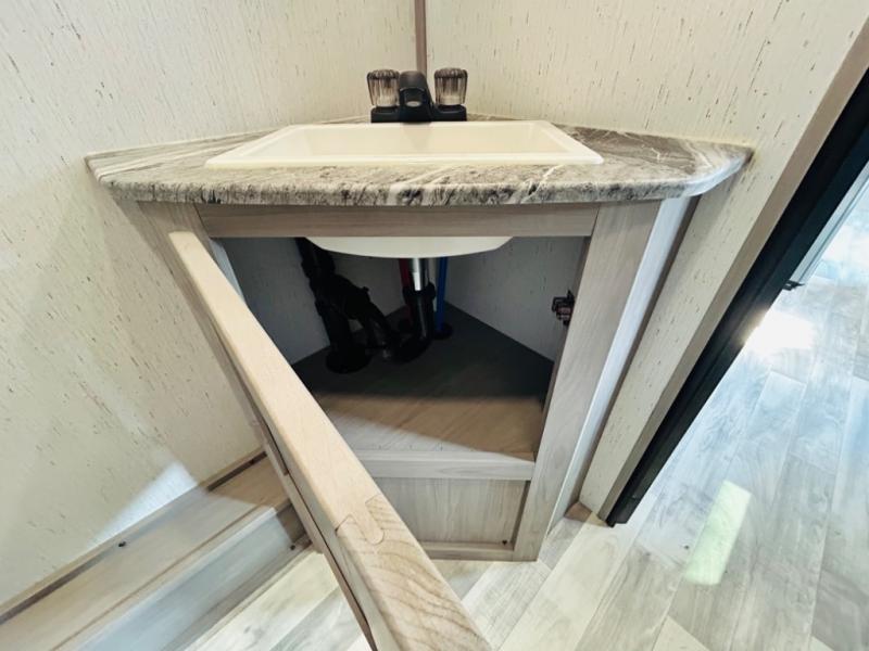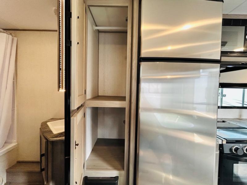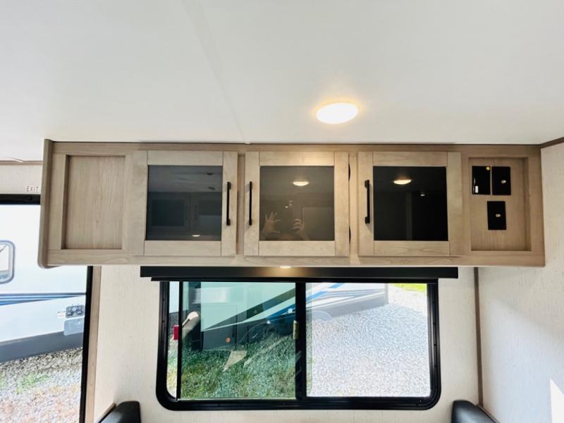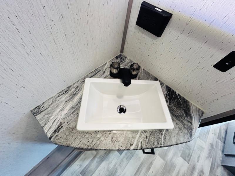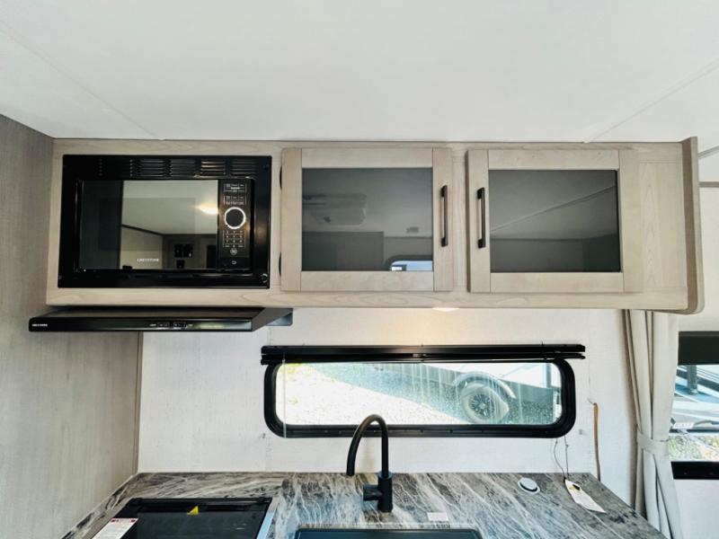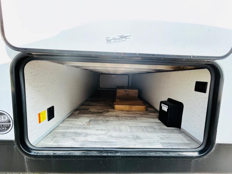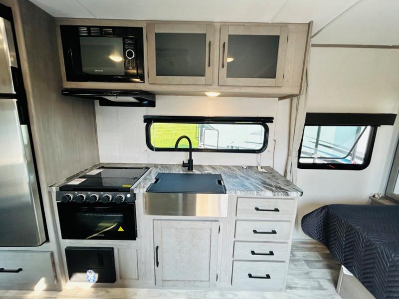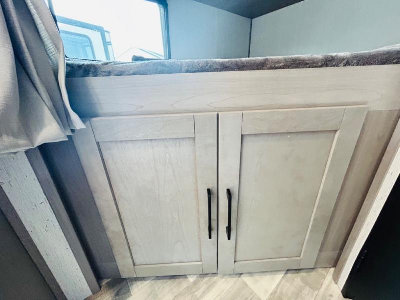 If you're looking for a lightweight travel trailer with more sleeping space, your search is over with this Kodiak Ultra-Lite. When you arrive at the lake, set up the 18' power awning with LED lights, then grab the fishing poles from the pass-through storage. When you return with your catch, you can cook it on the outside kitchen, then head indoors to freshen up in the full bath. The little ones may want to take a rest on the double-size bunks, while the adults enjoy the queen bed up front. This model includes plenty of storage space, including a pantry in the kitchen for snacks!