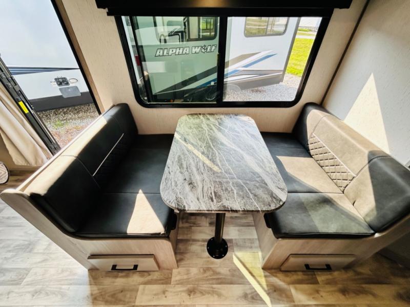 Each Kodiak Ultra-Lite travel trailer by Dutchmen includes a laminated crown roof, aluminum framing, and bear cage construction for a lightweight, yet durable RV. The HyperDeck flooring features fiberglass reinforced polypropylene, a higher density foam core, and a steel powder coated main frame. Head indoors to find seamless countertops, night shades throughout, and USB ports for your electronics. These travel trailers come with a power tongue jack and power stabilizer jacks for easy set-up, and easy lube axles to ensure smooth towing. Since the Kodiak Ultra-Lite is prepped for WiFi 4G LTE you can choose to get some work done while you're away from home, and you might even want to add the 32" LED TV available on some models!