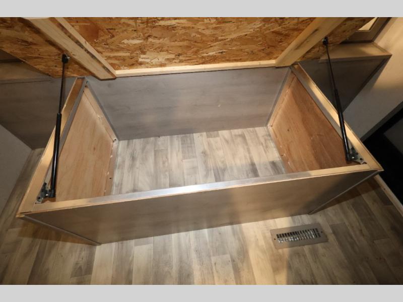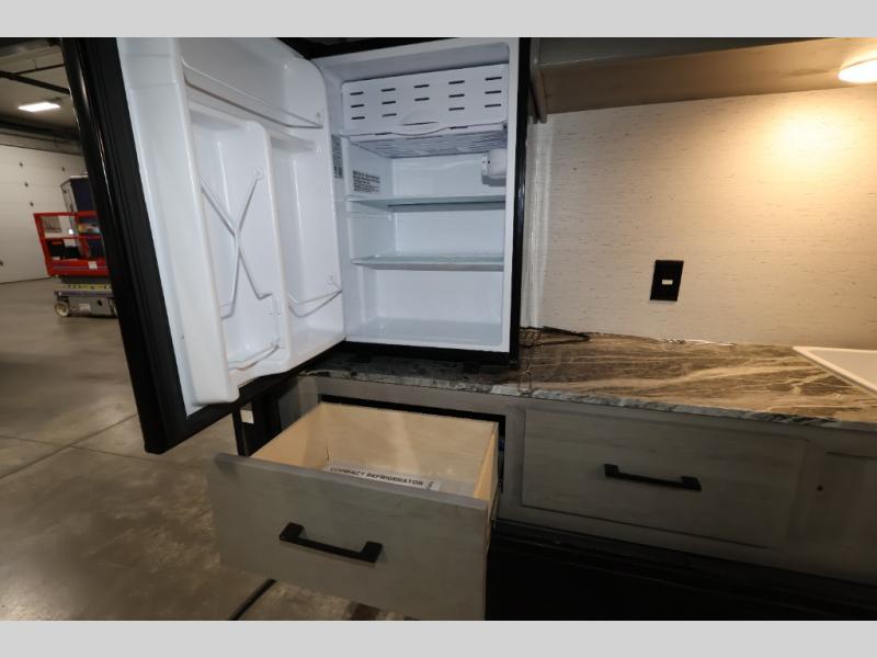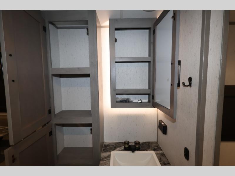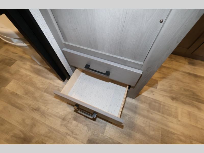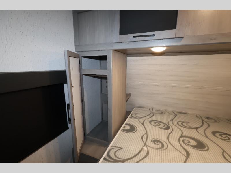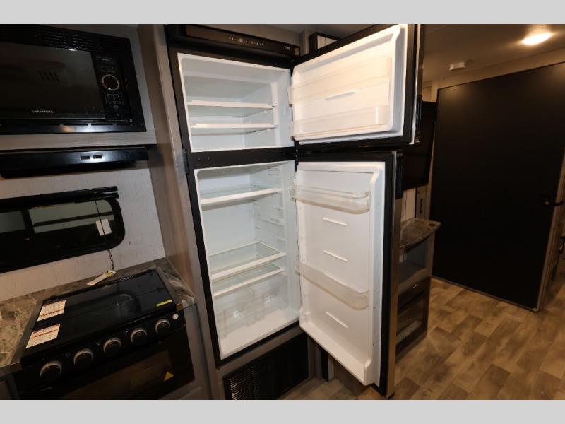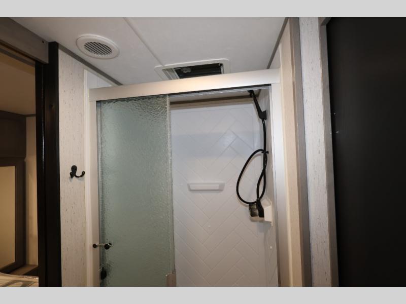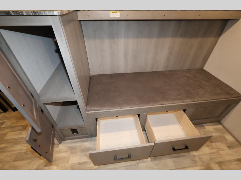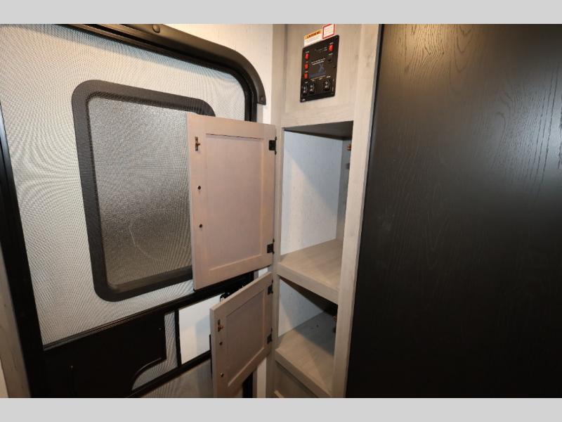 It will be so easy camping with friends in this spacious travel trailer with double slides and a rear private bunkhouse. Once you're set up at the campsite, prepare lunch on the outside kitchen and relax under the 18' power awning with LED lights. You may just decide to grab the fishing poles from the pass-through storage and head down to the river. Everyone can meet in the main living area around the U-shaped dinette or on the sofa, and the fireplace here will make it feel more like home.