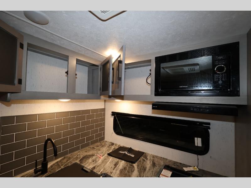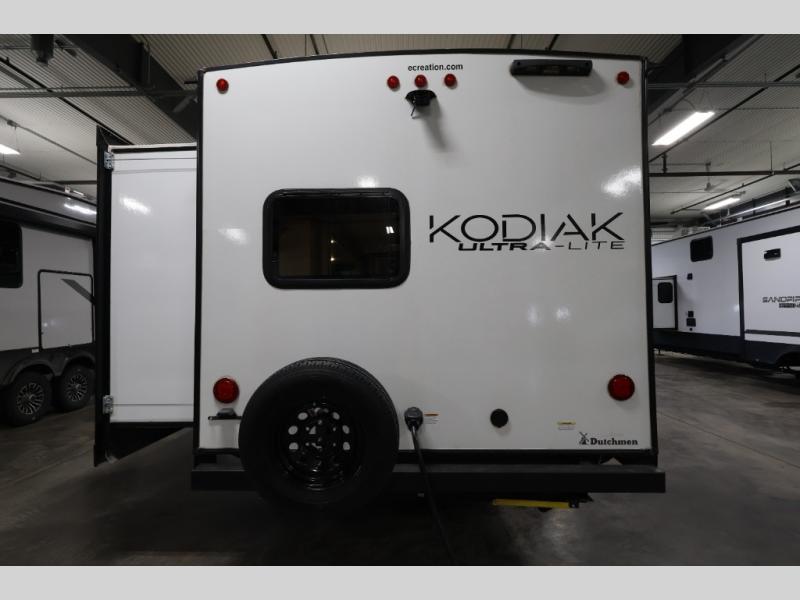 Each Kodiak Ultra-Lite travel trailer by Dutchmen includes a laminated crown roof, aluminum framing, and bear cage construction for a lightweight, yet durable RV. The HyperDeck flooring features fiberglass reinforced polypropylene, a higher density foam core, and a steel powder coated main frame. Head indoors to find seamless countertops, night shades throughout, and USB ports for your electronics. These travel trailers come with a power tongue jack and power stabilizer jacks for easy set-up, and easy lube axles to ensure smooth towing. Since the Kodiak Ultra-Lite is prepped for WiFi 4G LTE you can choose to get some work done while you're away from home, and you might even want to add the 32" LED TV available on some models!