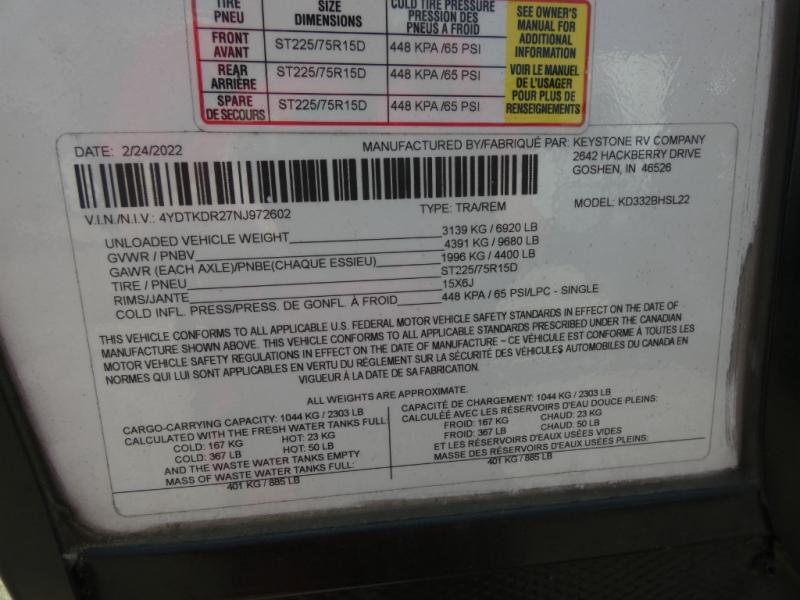 Used 2022 Dutchmen RV Kodiak Ultra-Lite 332BHSL Travel Trailer