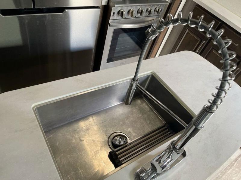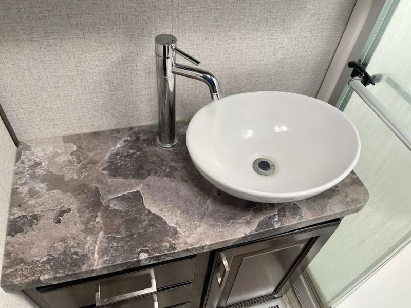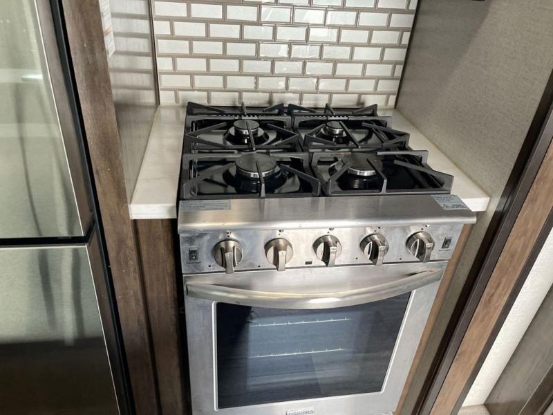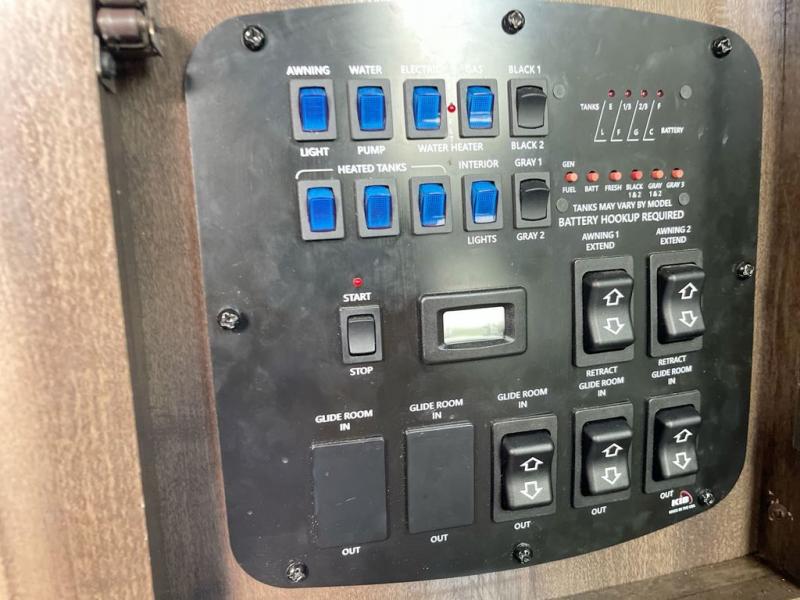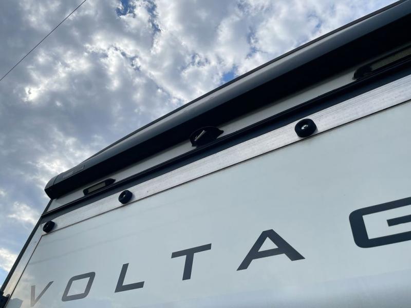 The Dutchmen Voltage toy hauler is an amazing RV that won't disappoint! These elegant units have more durability and luxury than you ever thought possible. They include an All Weather Package, 16" custom wheels, a gel-coat fiberglass exterior finish, MorRyde CRE 3000 suspension, Secure Stance entry steps, and a second fuel tank for a total of 60 gallons. There is a second power awning over the garage entry door, and you will even find a third awning above the ramp patio. The tinted frameless windows will protect you from outside prying eyes and harsh sunlight, and the interior solid-surface countertops in the kitchen will withstand many years of chopping and dicing. You'll also have a 12" diamond plate in the garage for protection, and there is an aluminum four-step entry that leads right into the garage.