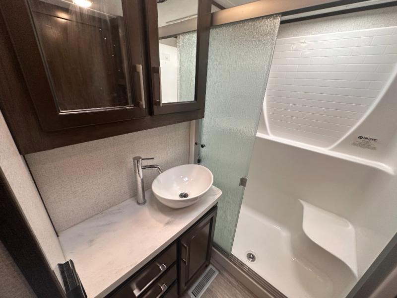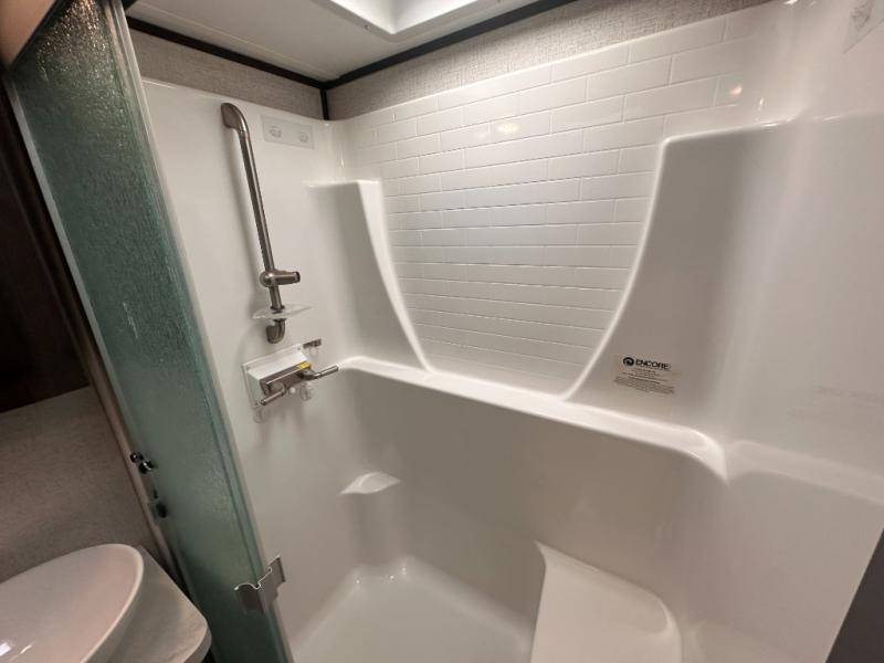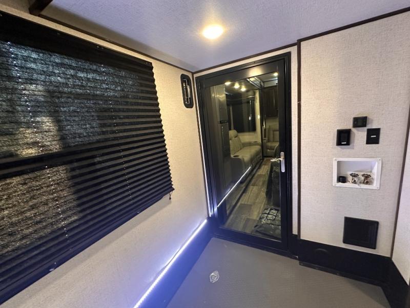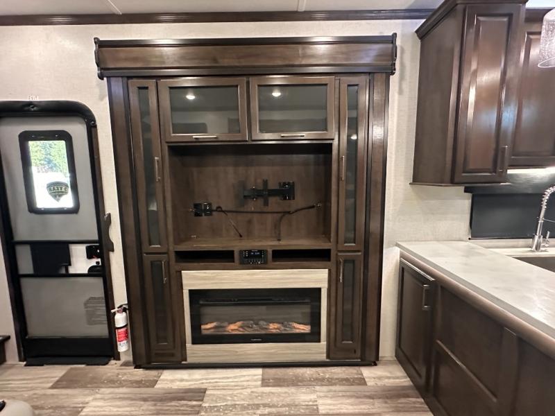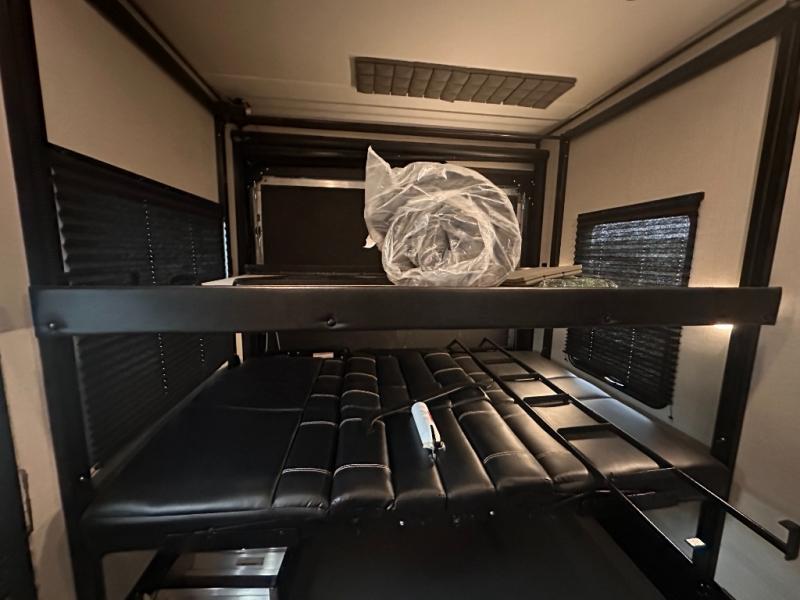 If you're ready to take luxurious vacations, grab this Voltage toy hauler! It offers you an upscale interior outfitted with all of the latest technology, like a USB charging station, a 50" LCD HDTV, a garage TV, a fireplace, and a Happi-Jack power bunk. Two entry doors give you easy access to this unit, and an outside kitchen makes it possible for you to cook two meals at once. You'll also love the convenience of having a full and half bathroom, and the heated/massaging residential sofas in the main living area are going to be the perfect relaxation spot.