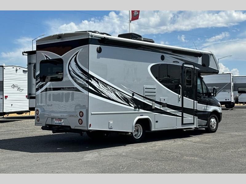 Each one of these Dynamax isata 3 Class C diesel motorhomes were designed to last for years of fun with an aluminum truss structured roof with a crowned, one-piece fiberglass skin! They are also constructed with gel-coat fiberglass walls with Azdel backing, 1 1/2" aluminum-framed, laminated sidewalls with block foam insulation, and an aerodynamic fiberglass front cap for better fuel efficiency. The 3.0L V6 turbo diesel engine is also fuel efficient and a Mercedes-Benz Sprinter chassis holds them together. The MBUX 10.25" infotainment system comes with navigation so you won't have to worry about getting lost, as well as AM/FM, Bluetooth, Sirius/XM, Apple CarPlay, and Android Auto so you can listen to your favorite tunes while driving down the highway. Come find the one that best fits your needs today!