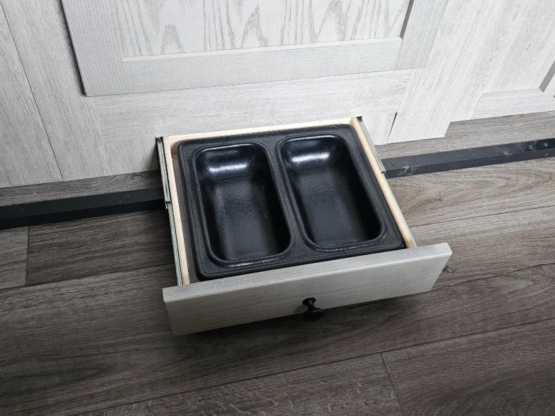 Pet-friendly features include a built-in pet dish under refrigerator