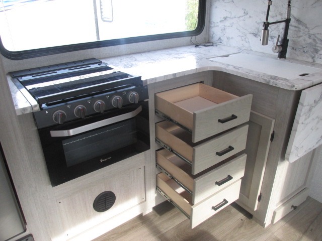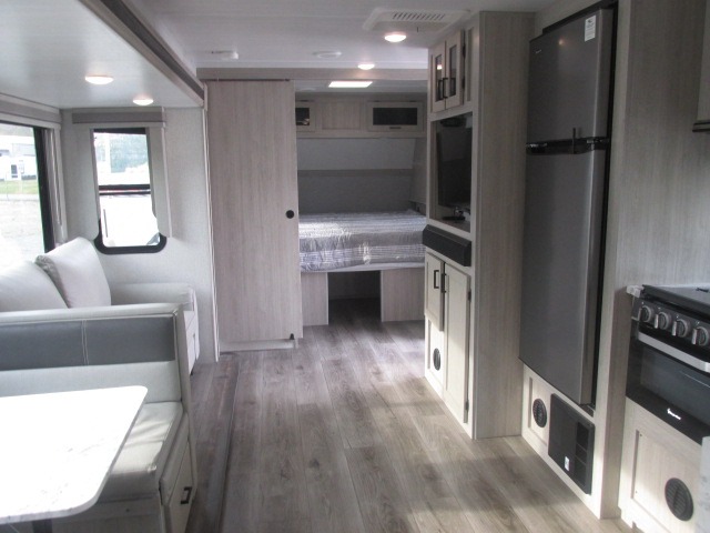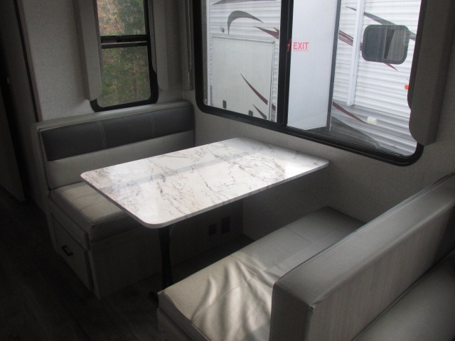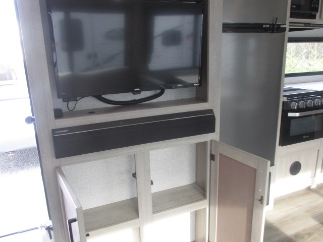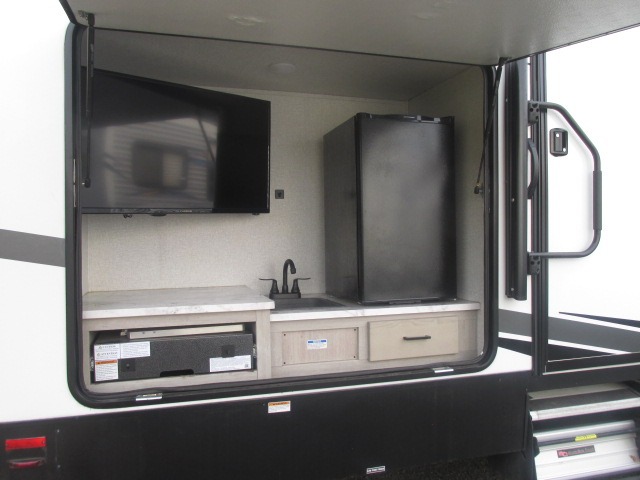 If you're looking for a travel trailer to take tailgating, this Alta model is the one! After you've unloaded the pass-through storage and set up the 20' power awning, start lunch on the outside kitchen, complete with an outdoor 40" LED TV! Since there are dual entry doors you can enter in through the main living area, or the full bath for convenience. The little ones are sure to spend most of their time in the rear bunkhouse that includes a flip-up bunk under the sofa, plus a second bunk across the room. The adults can visit at the booth dinette or on the tri-fold sofa, and check out the front private bedroom with sliding doors and a king bed for all-around comfort!