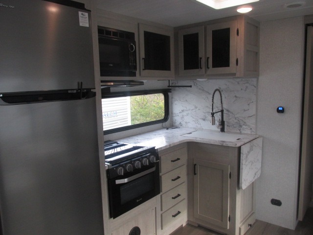 Each Alta travel trailer by EAST TO WEST is constructed with a 5" vacuum bonded roof, Azdel Onboard composite panels, and diamond plate front rock guard for added protection. Outside, you'll find two marine-grade exterior speakers, 4-point electric stabilizer jacks, and Furrion back-up camera prep that can be added to make maneuvering in and out of campgrounds easier than ever. There are USB charging stations for your tablet or phone, upgraded Congoleum linoleum flooring that is easy to keep clean, and designer solid surface countertops you are sure to love. The 15,000 BUT ducted A/C with quick cool and 35,000 BTU furnace will keep you comfortable in any season, and the 81" interior ceiling height will provide ample space to move about without feeling confined. Start a new adventure in an Alta travel trailer today!