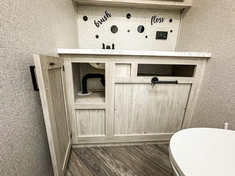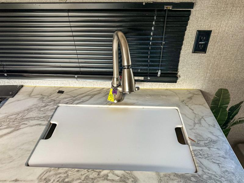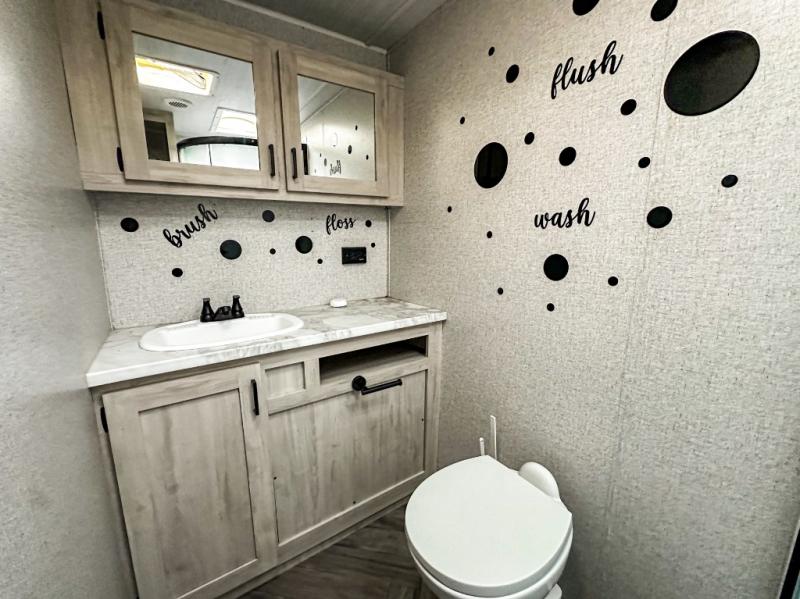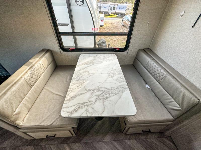 With any Della Terra travel trailers by EAST TO WEST, there is aluminum siding, bowed truss roof rafters, a one-piece seamless DiFlex ll roof, fiberglass insulation throughout, and a fully enclosed and heated underbelly with anti-puncture underbelly allowing you to stay and travel during any climate. The interior offers comfort and convenience throughout with an 81" ceiling height, seamless designer countertops, night shades to be able to sleep in, a sound system with Bluetooth and HDMI connectivity, and an extra large dinette picture window for great views. Choose a Della Terra that fits your camping lifestyle!