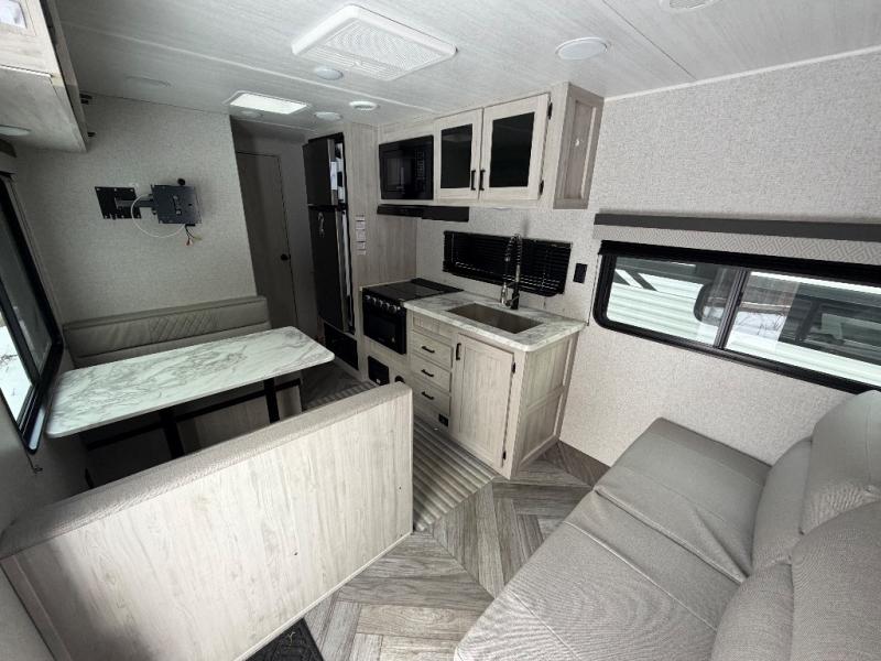 With any Della Terra travel trailers by EAST TO WEST, there is aluminum siding, bowed truss roof rafters, a one-piece seamless DiFlex ll roof, fiberglass insulation throughout, and a fully enclosed and heated underbelly with anti-puncture underbelly allowing you to stay and travel during any climate. The interior offers comfort and convenience throughout with an 81" ceiling height, seamless designer countertops, night shades to be able to sleep in, a sound system with Bluetooth and HDMI connectivity, and an extra large dinette picture window for great views. Choose a Della Terra that fits your camping lifestyle!