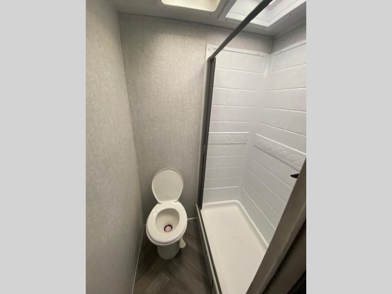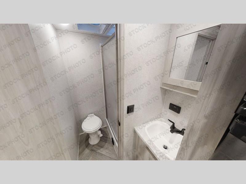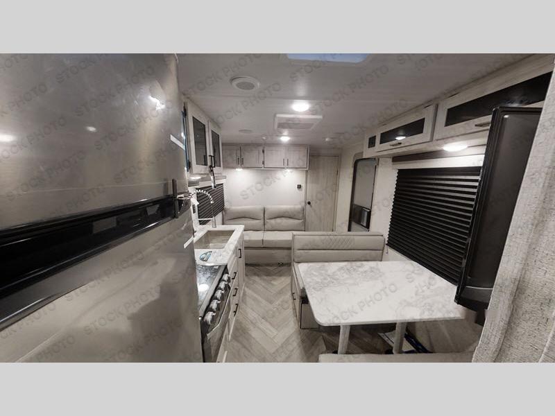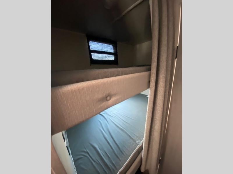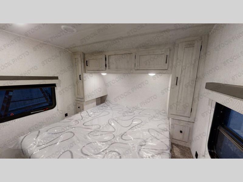 Calling all families that enjoy camping! This trailer makes it even sweeter since it sleeps eight to ten when you utilize the beds and the furnishings as sleeping space. The owners will have their own privacy in the front bedroom and be able to sleep like a king, while the others will have double-size bunks, a booth dinette and a jack knife sofa to choose from. You will find storage throughout including underneath the king-size bed and the furniture. The cook will enjoy the galley kitchen amenities and there is an optional outside kitchen with fridge and pull-out griddle if they want more choices. And everyone can stay refreshed using the private shower/tub and toilet room with a bathroom sink just outside the door.