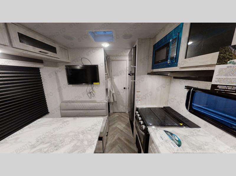 With any Della Terra travel trailers by EAST TO WEST, there is aluminum siding, bowed truss roof rafters, a one-piece seamless DiFlex ll roof, fiberglass insulation throughout, and a fully enclosed and heated underbelly with anti-puncture underbelly allowing you to stay and travel during any climate. The interior offers comfort and convenience throughout with an 81" ceiling height, seamless designer countertops, night shades to be able to sleep in, a sound system with Bluetooth and HDMI connectivity, and an extra large dinette picture window for great views. Choose a Della Terra that fits your camping lifestyle!
