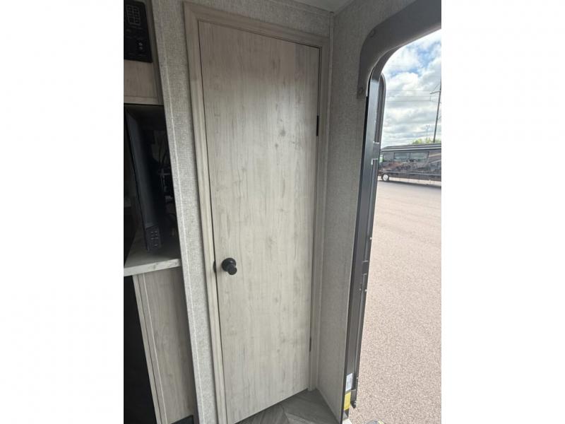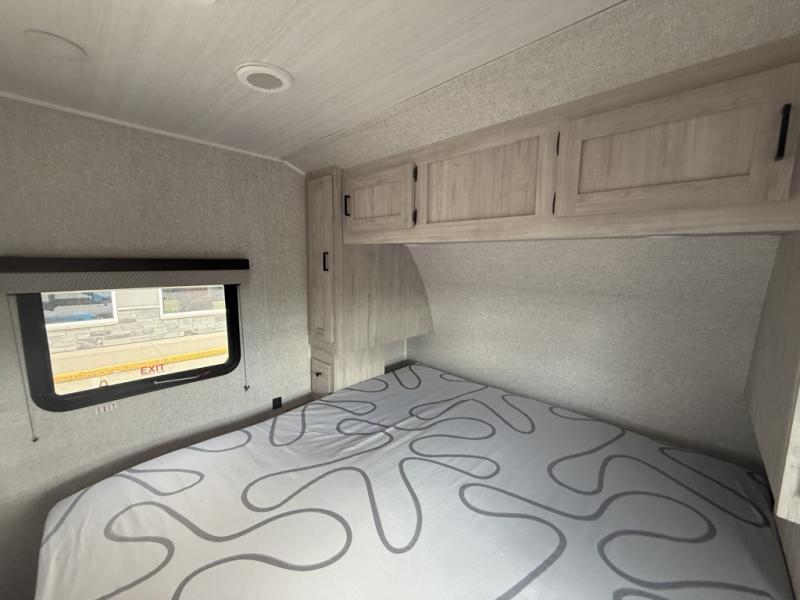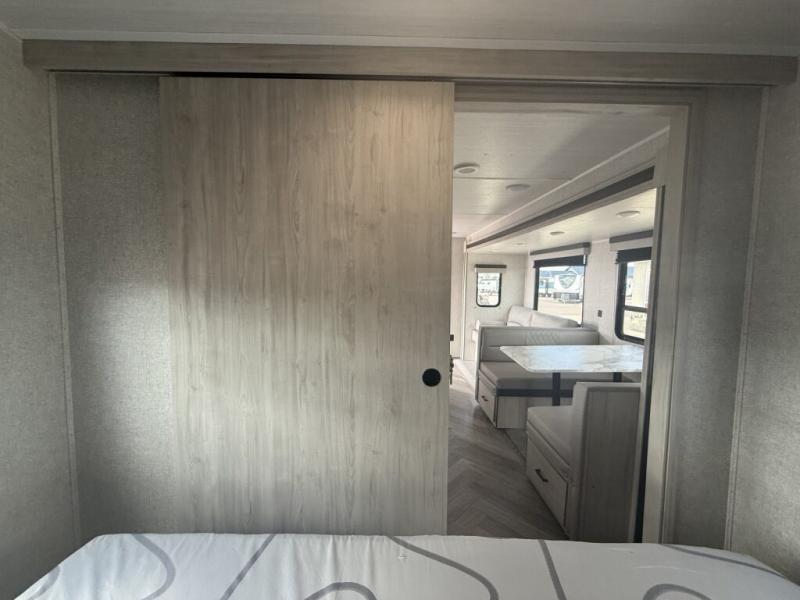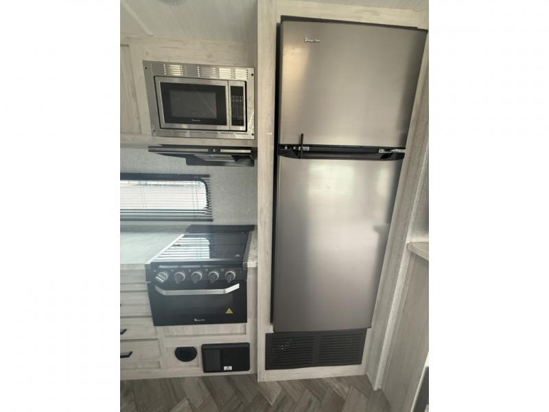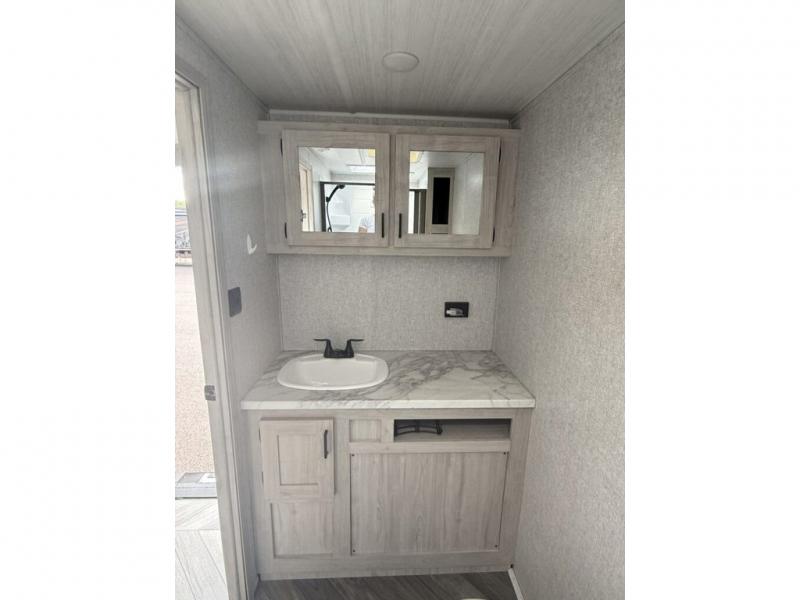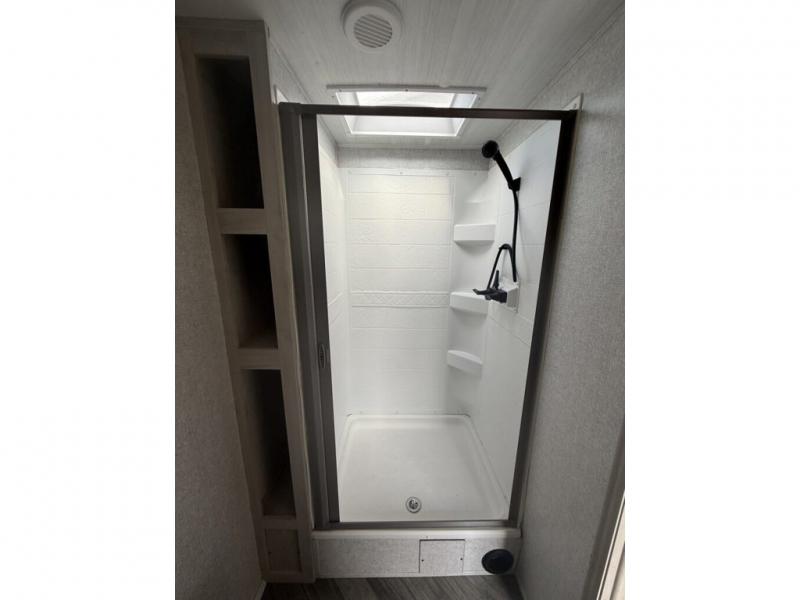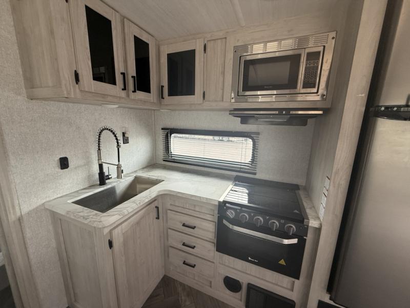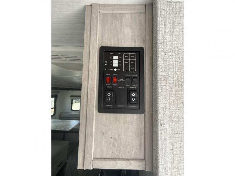 When you are wanting a little more interior space in your next travel trailer, take a look inside! This large slide out widens the center so you can easily make meals using full amenities without having to move for someone walking from the front private bedroom to the rear spacious bathroom. There is a king-size bed with storage on both sides, underneath and above, plus a space saving sliding door. The oversized booth dinette and jack knife sofa offer comfortable seating as well as extra sleeping space for overnight guests. And the fireplace is just a nice feature to enjoy. And the large pantry is a convenient feature you will surely appreciate. There is so much more!