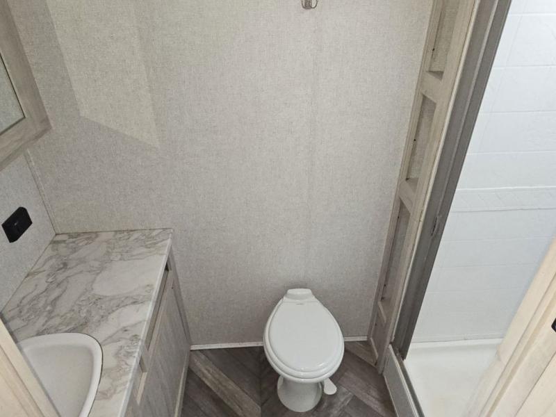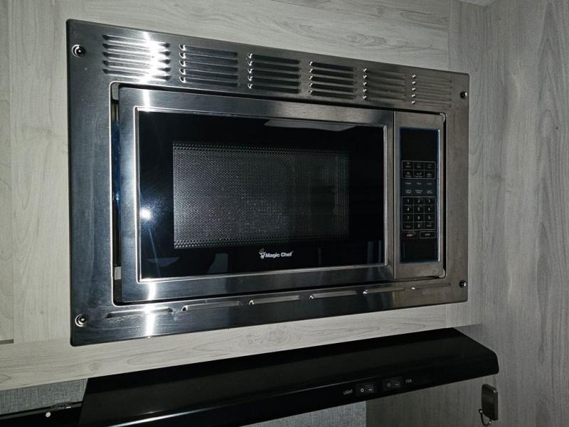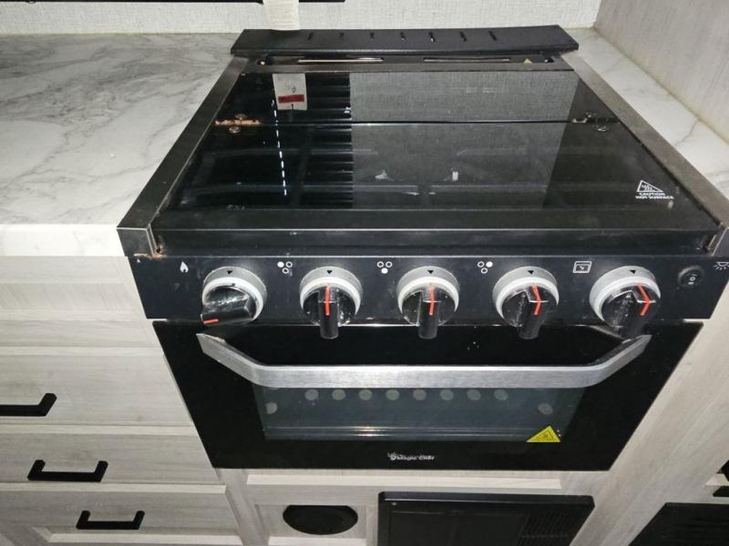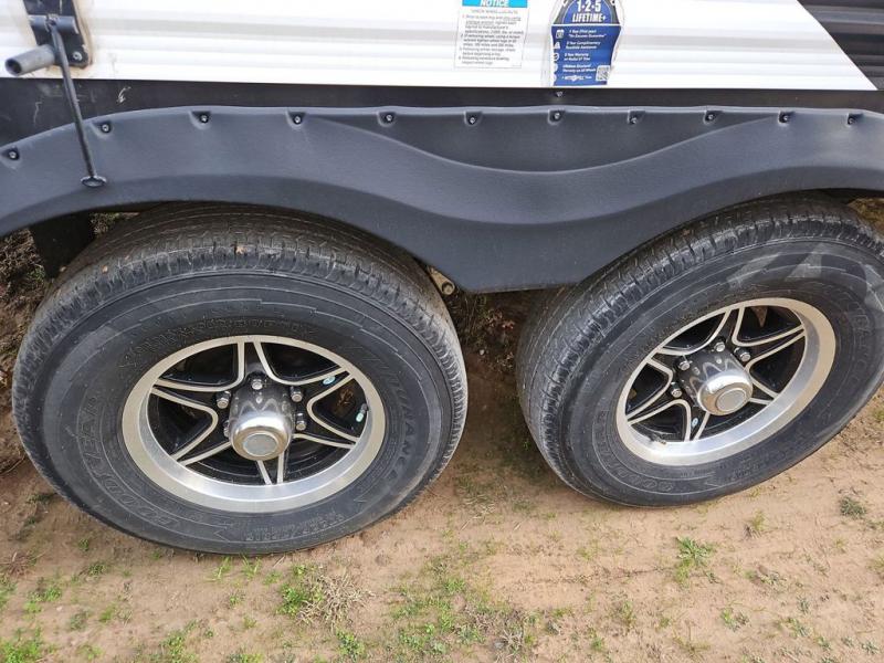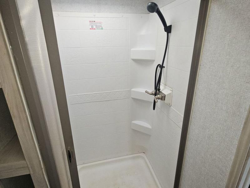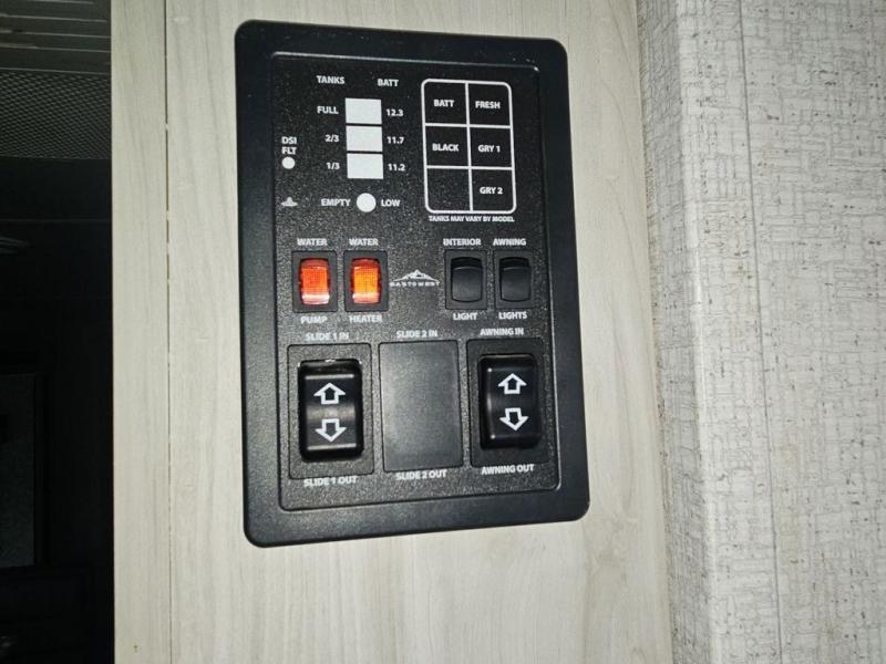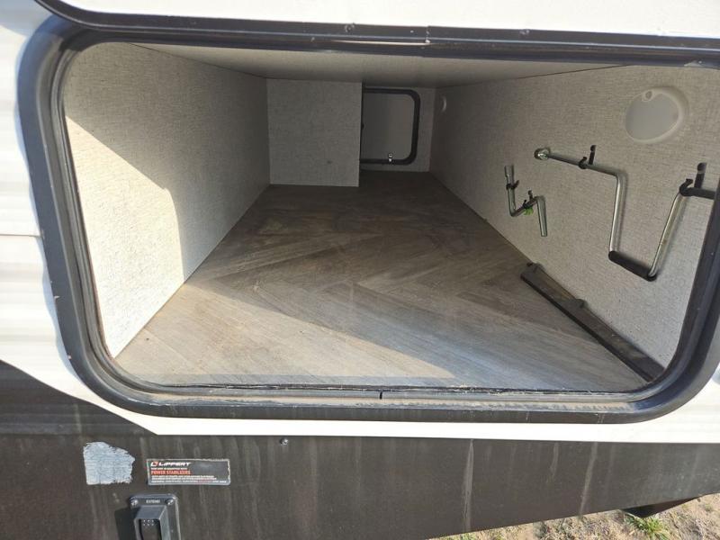 When you are wanting a little more interior space in your next travel trailer, take a look inside! This large slide out widens the center so you can easily make meals using full amenities without having to move for someone walking from the front private bedroom to the rear spacious bathroom. There is a king-size bed with storage on both sides, underneath and above, plus a space saving sliding door. The oversized booth dinette and jack knife sofa offer comfortable seating as well as extra sleeping space for overnight guests. And the fireplace is just a nice feature to enjoy. And the large pantry is a convenient feature you will surely appreciate. There is so much more!