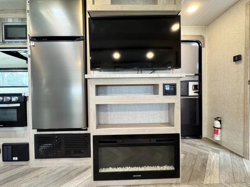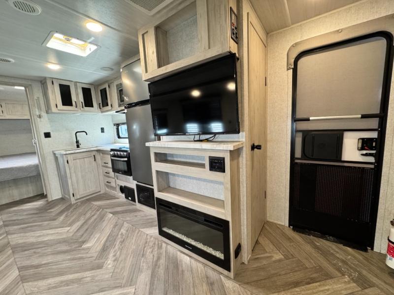 If you are looking for a high-quality couple's coach with zero compromises, this 2024 EAST TO WEST Della Terra 261RB for sale is it. This one-owner trade-in is loaded with the Silver Birch interior decor and features the upgraded Theater Seating facing a cozy fireplace. Unlike entry-level units, this Della Terra comes with Goodyear Tires and a King-Size Bed, offering a residential sleep experience you won't find in most 26-foot trailers.