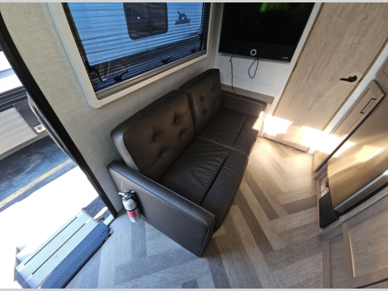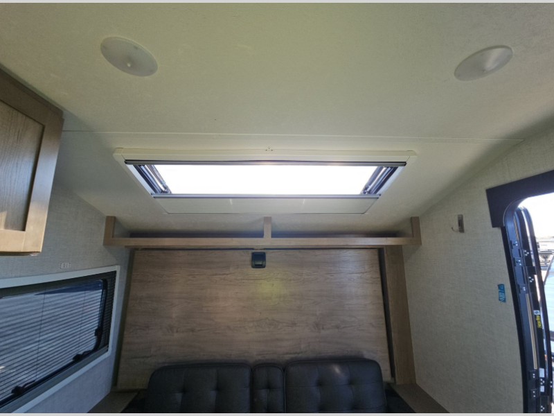 Go off-grid camping in comfort with this travel trailer! It features a full rear bathroom with a 24" x 40" shower to clean up in after a day of exploring and there is a wardrobe/linen closet to keep your towels close by as well. You can prepare your best meals with the two burner cooktop and 8 cu. ft. refrigerator, then enjoy them at the jackknife sofa with a removable table which is across from a 12V HDTV/AV system with a hidden wardrobe behind it. Store all of your outdoor gear in the exterior pass-through storage areas and stay protected by the 12' electric awning with dimmable LED light while you cook at the outside kitchen which has a 1.6 cu. ft. refrigerator and an optional griddle. When you're ready to wind down your nights, lay down on the front 60" x 80" Murphy bed and admire the beautiful stars through the "Stargazer" skylight!
