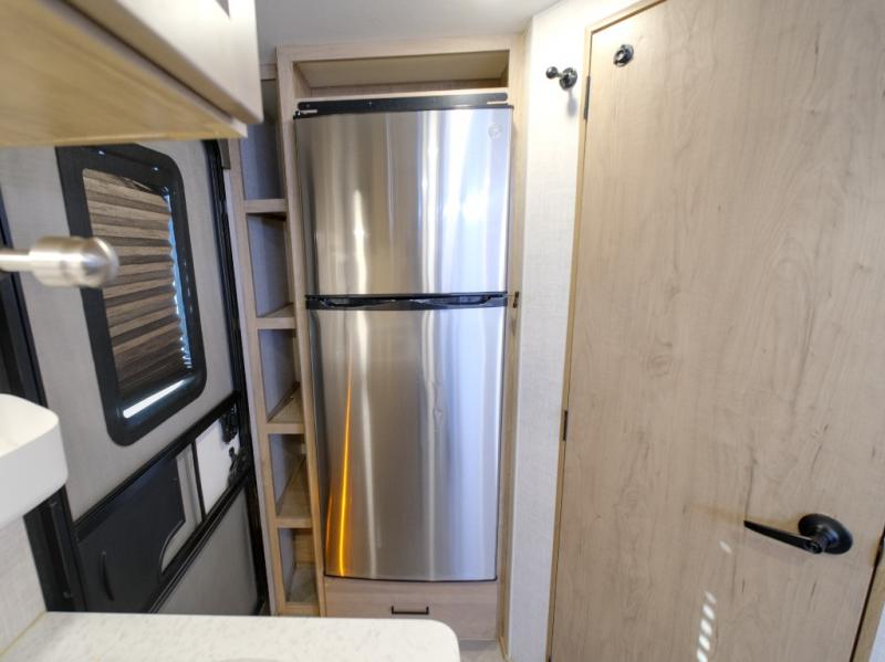 Pack your bags and hitch up this travel trailer for an unforgettable camping trip! Start each day feeling well rested after sleeping on the front queen bed and look up at the beautiful sky through the "Stargazer" skylight. Another friend can join in on the fun too and sleep on the jackknife sofa slide when you are done relaxing on it while watching a movie with the 12V HDTV/AV system which even has a hidden wardrobe behind it. On one side of the 8 cu. ft. refrigerator there is a pantry for your snacks, and on the other side you will find the rear corner bathroom with a 32" radius shower to freshen up. You can prepare delicious home cooked meals indoors with the two burner cooktop or head to the outside kitchen.