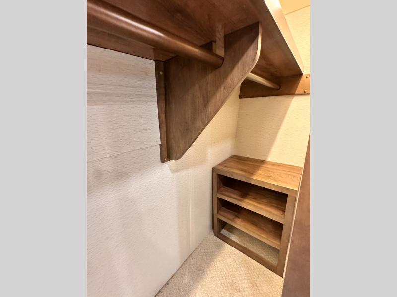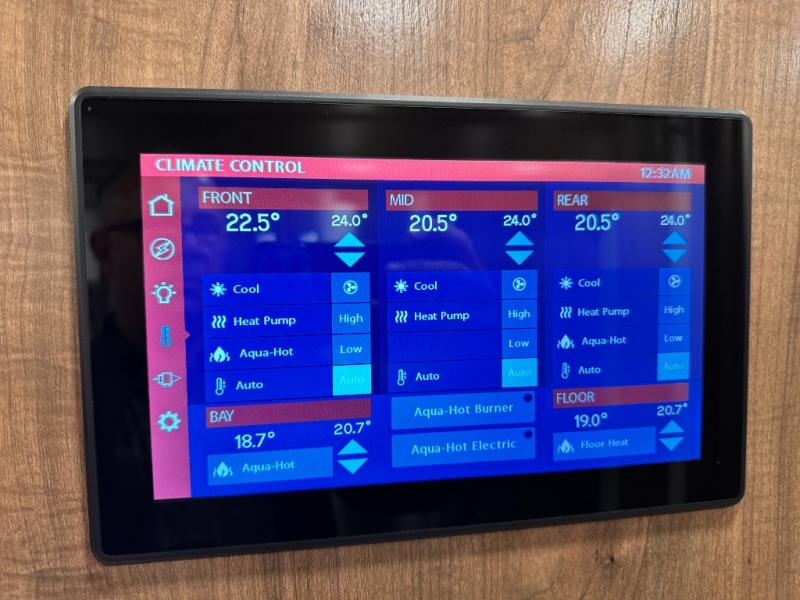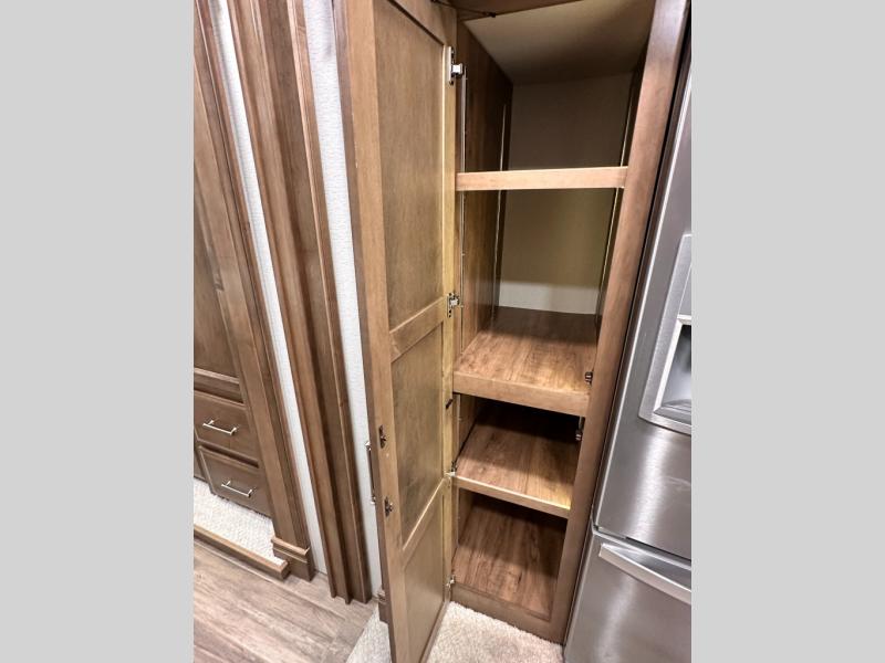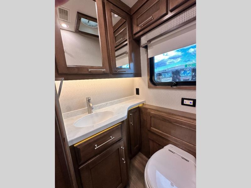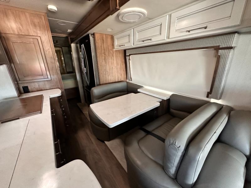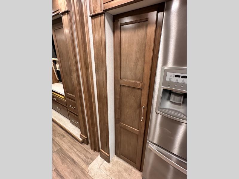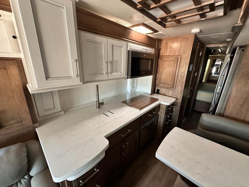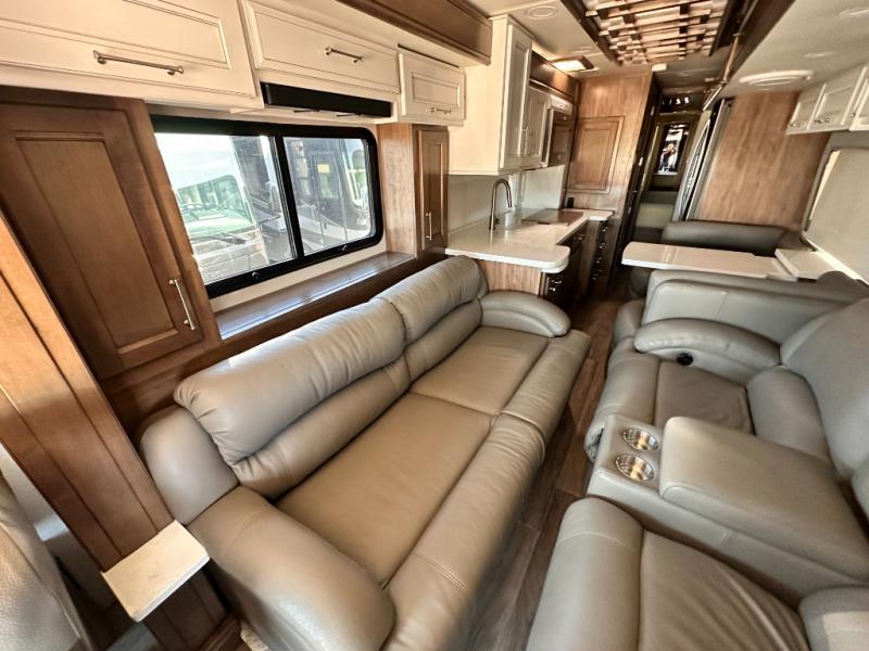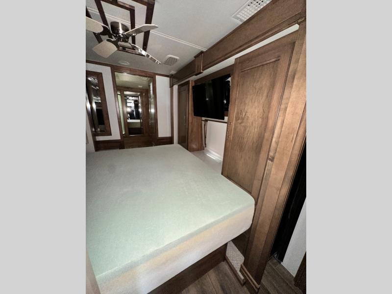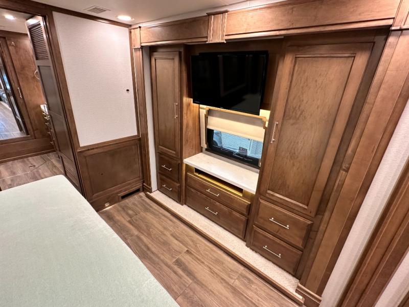 The Aspire Class A diesel motorhome by Entegra Coach starts with a Spartan K2 raised-rail chassis and a Cummins L9 turbocharged 450 HP engine to bring power to your adventures. The cockpit is packed with features to make each trip enjoyable, like the Xite XSG4 infotainment system, the E-Z Steer adjustable power steering assist, and the JBL premium audio 5-speaker sound system to crank up the highway tunes. Each model includes Aqua-Hot heated basement storage, three 15,000 BTU A/C units, an Onan 10,000-watt diesel generator, and many more hassle-free utilities. You will fall in love with the Aspire interior that features premium leather Villa furniture, solar day shades and blackout night shades, a textured porcelain tile shower with a skylight and clear glass door, and a large cedar-lined wardrobe in the bedroom.