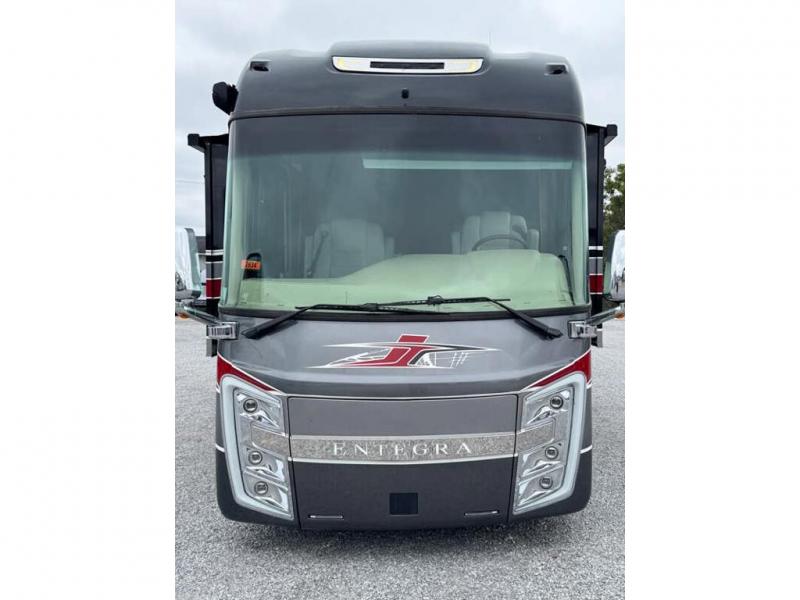 Experience the power and luxury behind the Cornerstone Class A diesel motorhome by Entegra Coach. Each model starts with a Cummins 15-liter X15 turbocharged 605HP engine on a Spartan K3 raised-rail chassis. You will appreciate the X-Bridge bracing welded into the chassis frame, plus there are insulated front and rear caps, 4" arched aluminum trusses filled with bat insulation and reflection Flexfoil, and many more durable construction materials. The interior is made to feel more like home with its premium leather Villa furniture, hand-laid porcelain tiled floors, and powered solar day and blackout night shades. The Cornerstone also includes Aqua-Hot heated basement storage, Girard power awnings, a Winegard Wi-Fi extender with 4G/LTE, plus many more amenities to make each trip enjoyable.