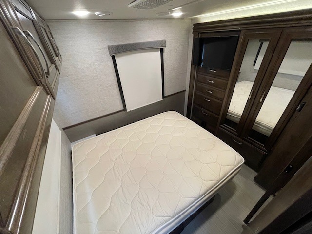 What a vision you'll be cruising down the highway to your next luxurious camping location in the Entegra Coach Vision Class A gas motorhome! With its high-class features, the Vision makes it quite easy to create memorable and lavish getaways. The exterior comes equipped with an electric patio awning with LED lights, an outside shower, an exterior utility center, awnings for the slide outs, lockable pass-through storage compartments, an exterior entertainment center with speakers, LED TV, and single-disc DVD/FM radio, and a 190W solar panel with dual controller. The Girard tankless LP water heater and Onan Marquis Gold Genset generator will provide extra convenience while the water filtration system keeps your water pure and tasting great. The E-Z DRIVE ride and handling package is another feature that is sure to spark your interest as it allows you to drive without much effort. This package includes a computer-balanced driveshaft, jounce bumpers, heavy-duty front and rear stabilizer bars, and SACHS shocks.