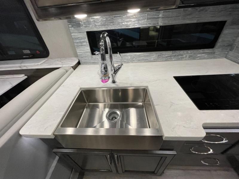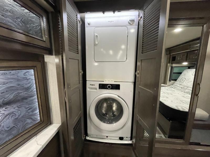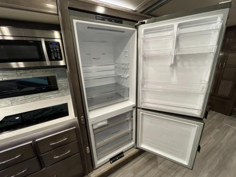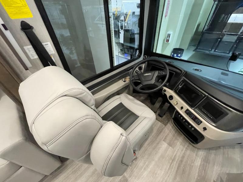 With any Frontier Class A diesel by Fleetwood RV, the Cummins 6.7L, 340HP engine with 700 lb./ft. torque gives you the power you want, the 100-gallon fuel tank allows you to stop less unless you want to take in the scenery, and the DriveTech/Optiview display and control system makes for a safer driving experience making each and every trip enjoyable. The legless electric patio awning with LED lighting and motion sensor retract provides protection while relaxing outside, and the extra exterior storage allows you to bring everything you need, plus some! Inside you will have (almost) endless hot water thanks to the Aqua-hot 250D compact heating unit, a polished solid surface galley countertop, a single-bowl, stainless steel farmhouse sink, many residential features throughout, and composite tile flooring.