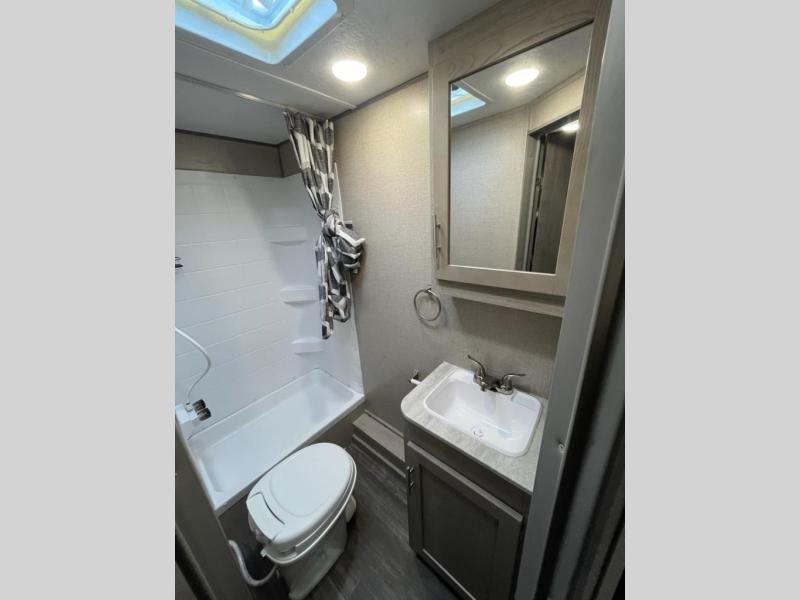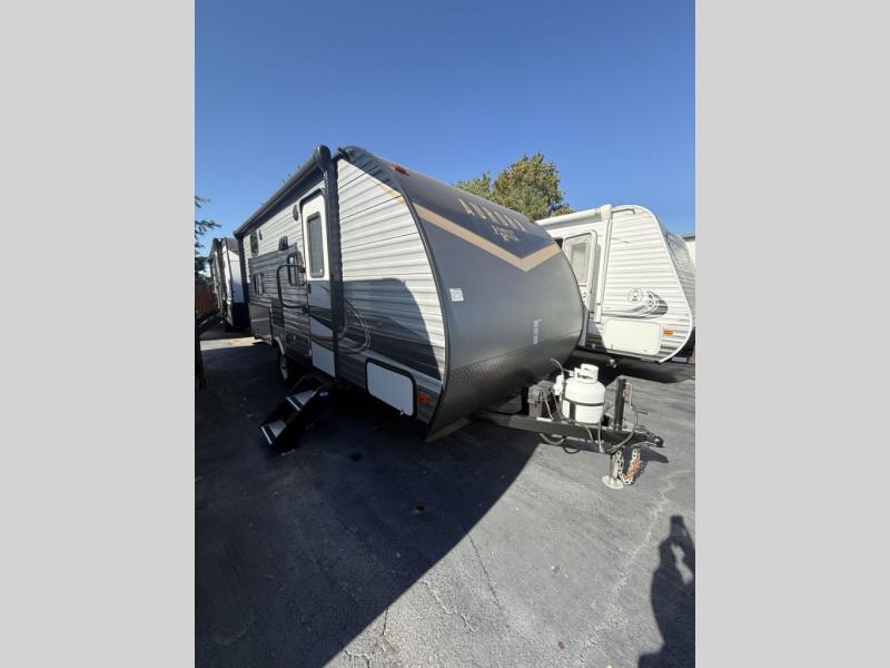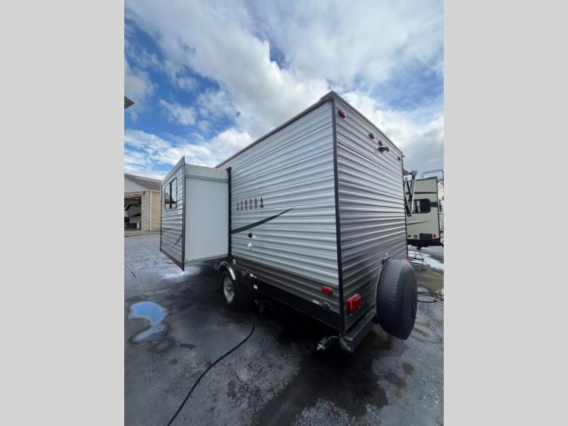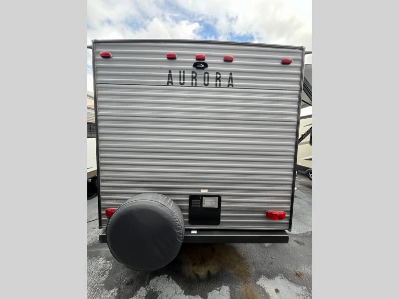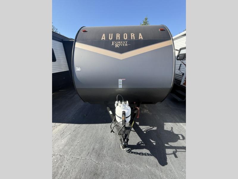 Comfortability, usability, and quality is what you will find in each one of these Forest River Aurora travel trailers! They are designed with a superior build and packed full with industry leading, functional, and distinctive standard features. SolidStep entrance steps and a XL swing arm grab handle help you to safely enter and exit the unit. The aluminum sport wheels are nitrogen filled radial tires with black polished aluminum fender skirts to protect your unit from road debris. Go off grid camping with the optional 100W roof mounted solar panel and crank up the tunes with the upgraded JBL Elite exterior speakers. The interiors are beautifully designed with a deep undermount farm style sink, stainless steel appliances and linoleum flooring throughout which will be easy to clean. Come find your favorite model today!