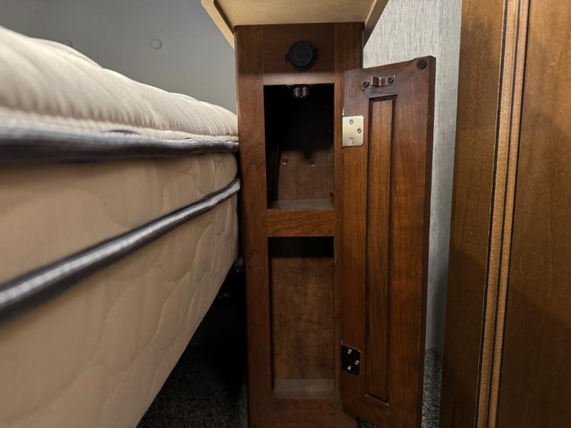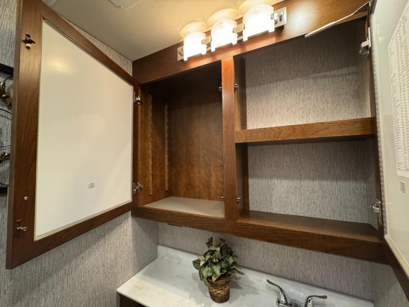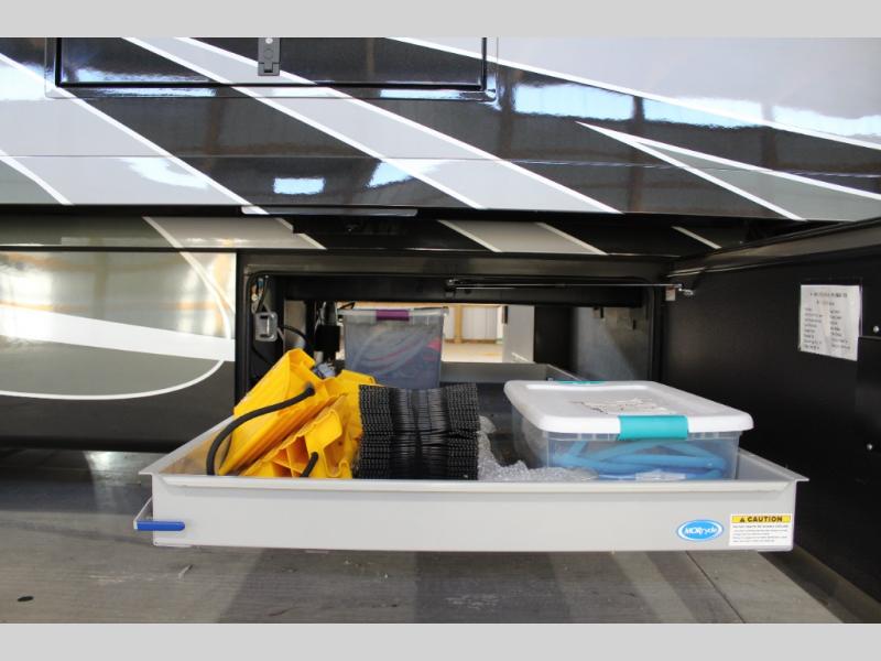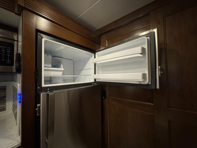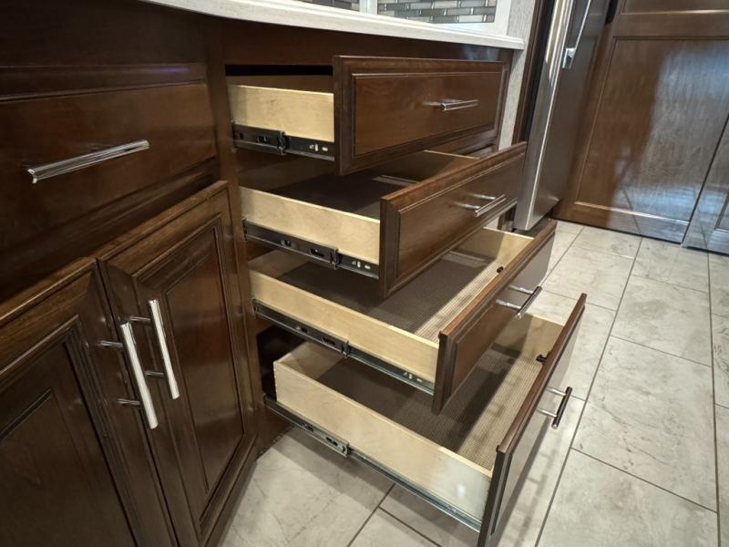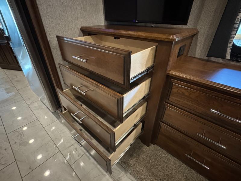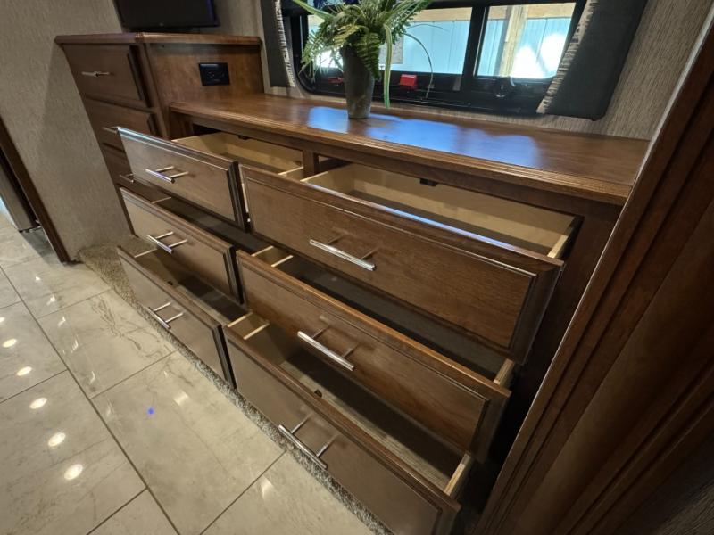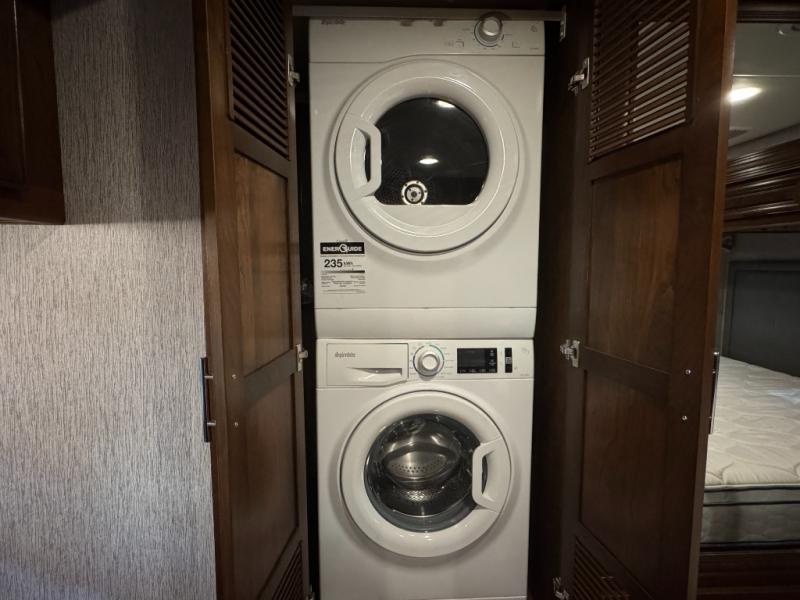 Fall in love with adventure when you travel in this triple slide out coach. The swivel captain's seats can become a part of the living area furniture once you park, and the rest of your crew can relax on the sofa slide out, or at the soft touch Dream booth dinette that includes storage underneath. You will enjoy the 43" LED TV across from the sofa, plus there is a 32" overhead TV as well. Add the optional fireplace to make this area feel even more like home! The kitchen includes everything you would find at home, including a 30" over-the-range convection microwave, a two burner electric induction cooktop, plus a double door residential refrigerator. You and your spouse will have the rear private bedroom all to yourselves with a king bed slide out, a large wardrobe, plus two dressers and a 32" LED TV. You can even choose to add an optional washer and dryer to make wash day easy as 1-2-3!